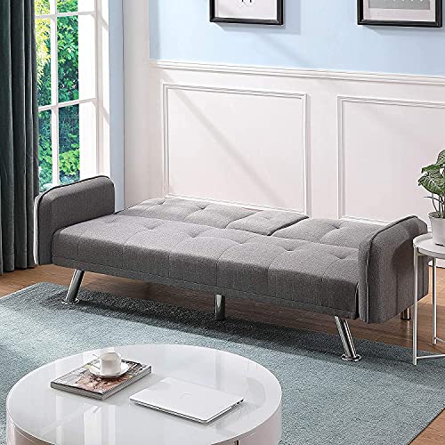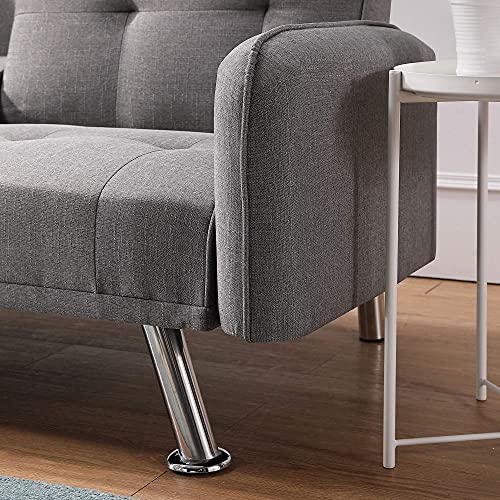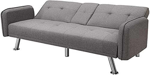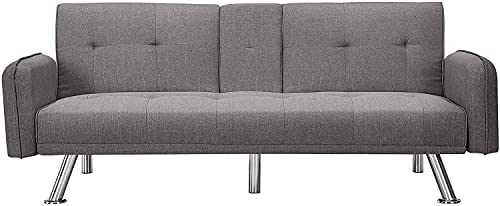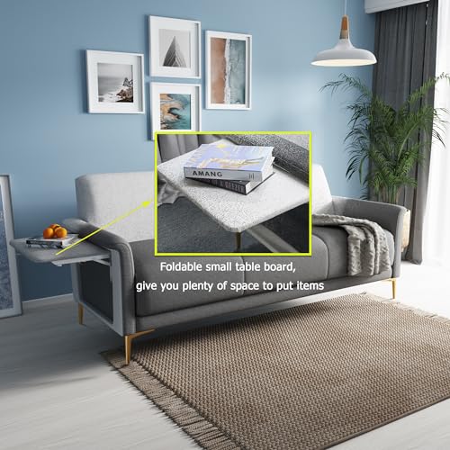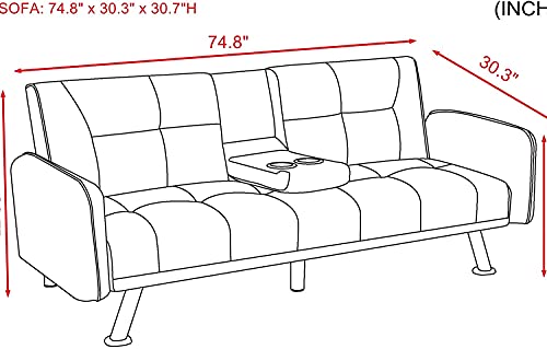 Futon Sofa Bed, Rockjame Convertible Loveseat for Living Room Apartment, Dorm, Metal Legs, 2 Cup Holders, 3 Angles for Adjusting, Living Room Furniture (Purple) (Color : Purple)