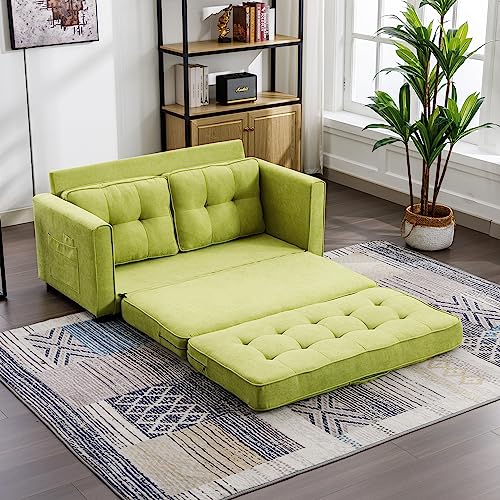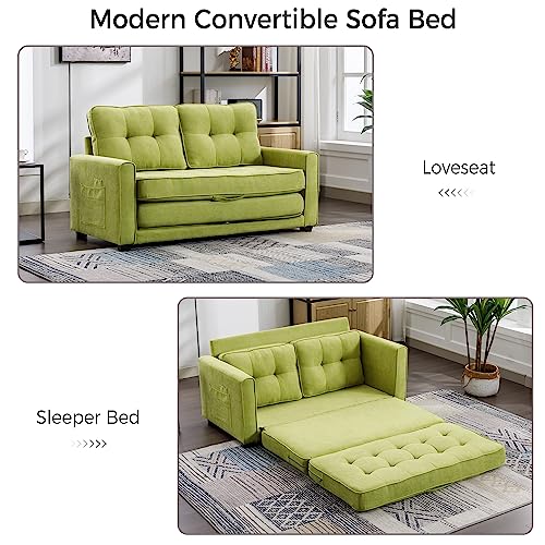 59.4" Loveseat Sofa with Pull-Out Bed Modern Upholstered Couch with Side Pocket for Living Room Office, Green Living Room Furniture Sofas & Couches