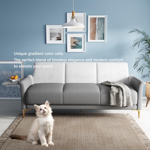 76 inch Colorful Sofa Couches for Living Room Comfy Upholstered 3-Seater Couch with Extra Deep Seats and Extra Thick Cushion Mid Century Love Seat for Bedroom Home Office, Green White