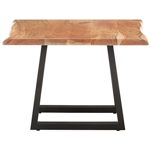 Coffee Table with Live Edges 23.6"x23.6"x15.7" Solid Acacia Wood,Acacia Wood and Iron Industrial Coffee Table with Live Edge and PowderCoated Legs for Living Room Living Room Furniture, Accent Tables