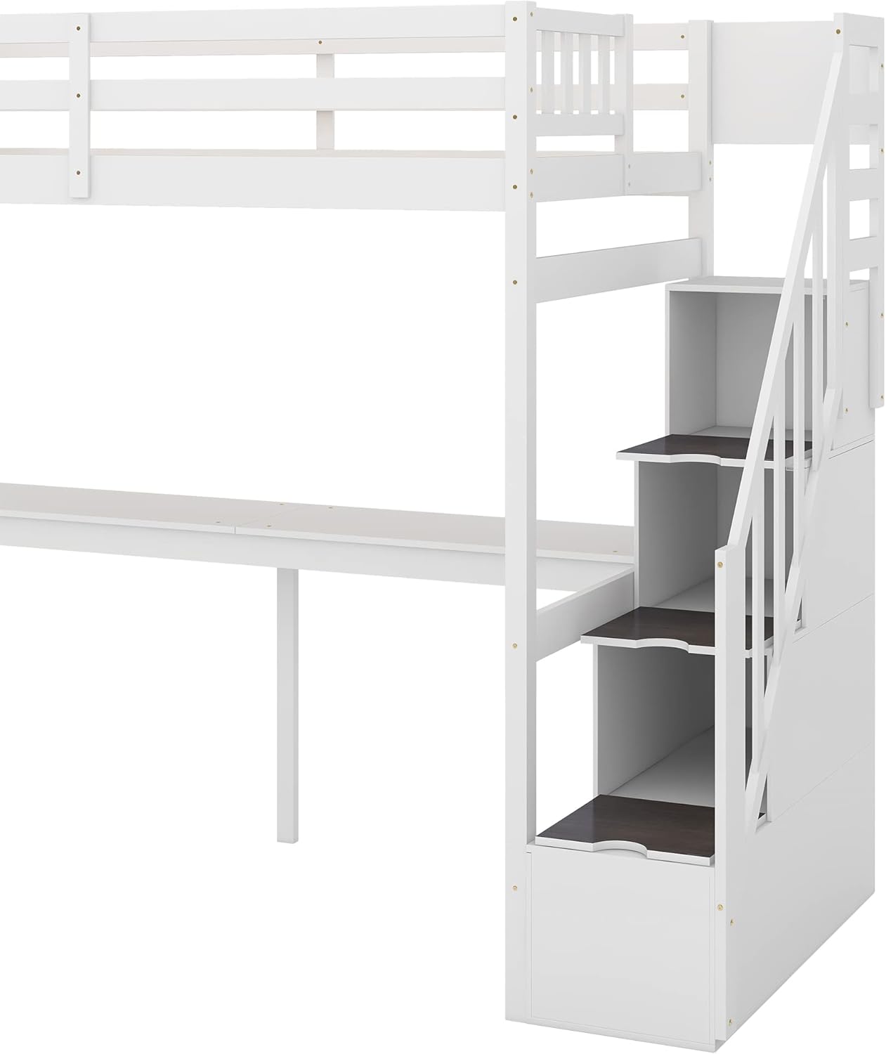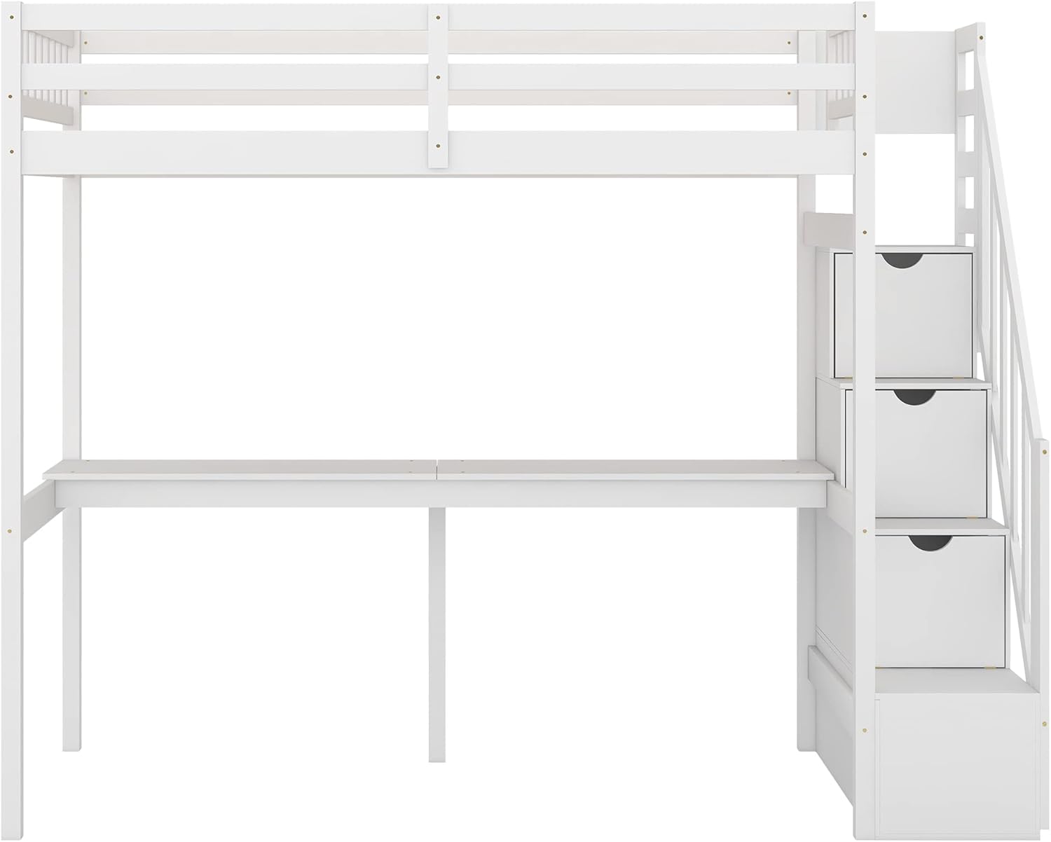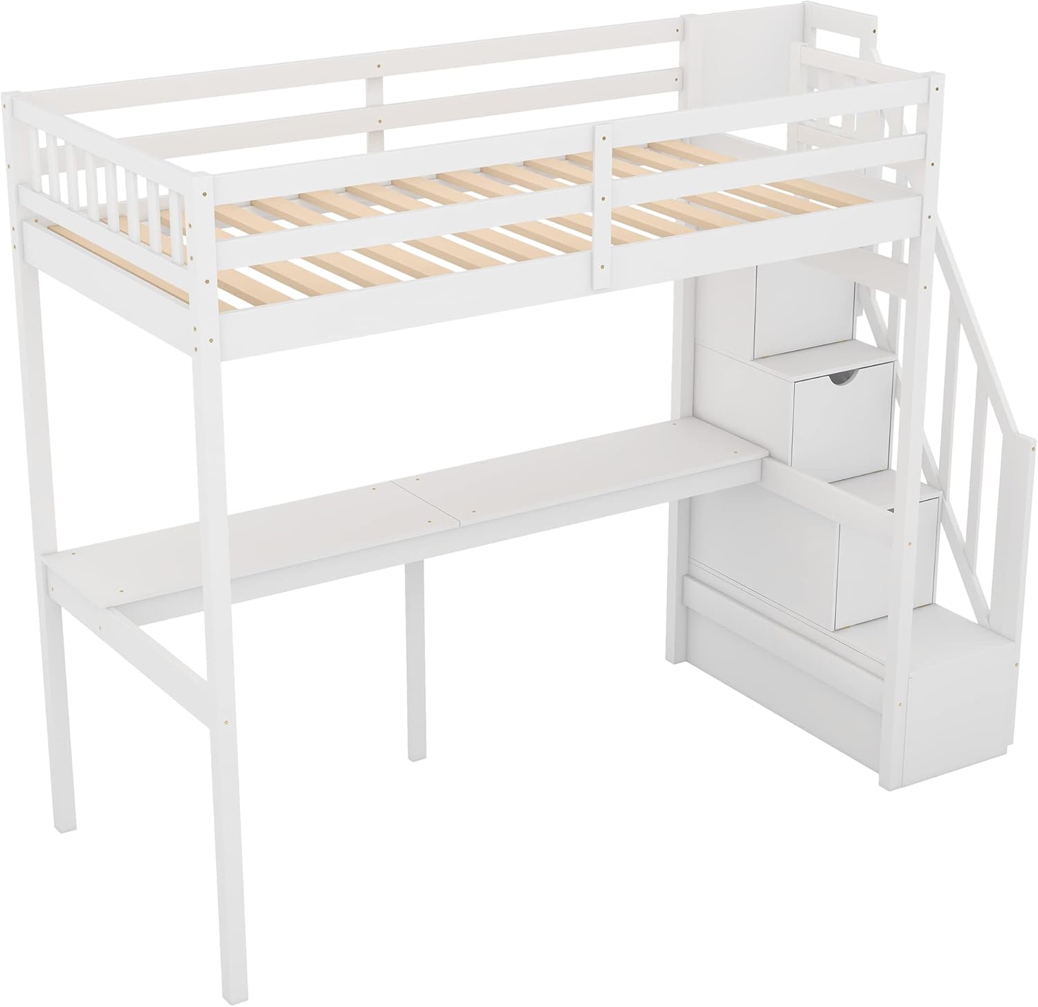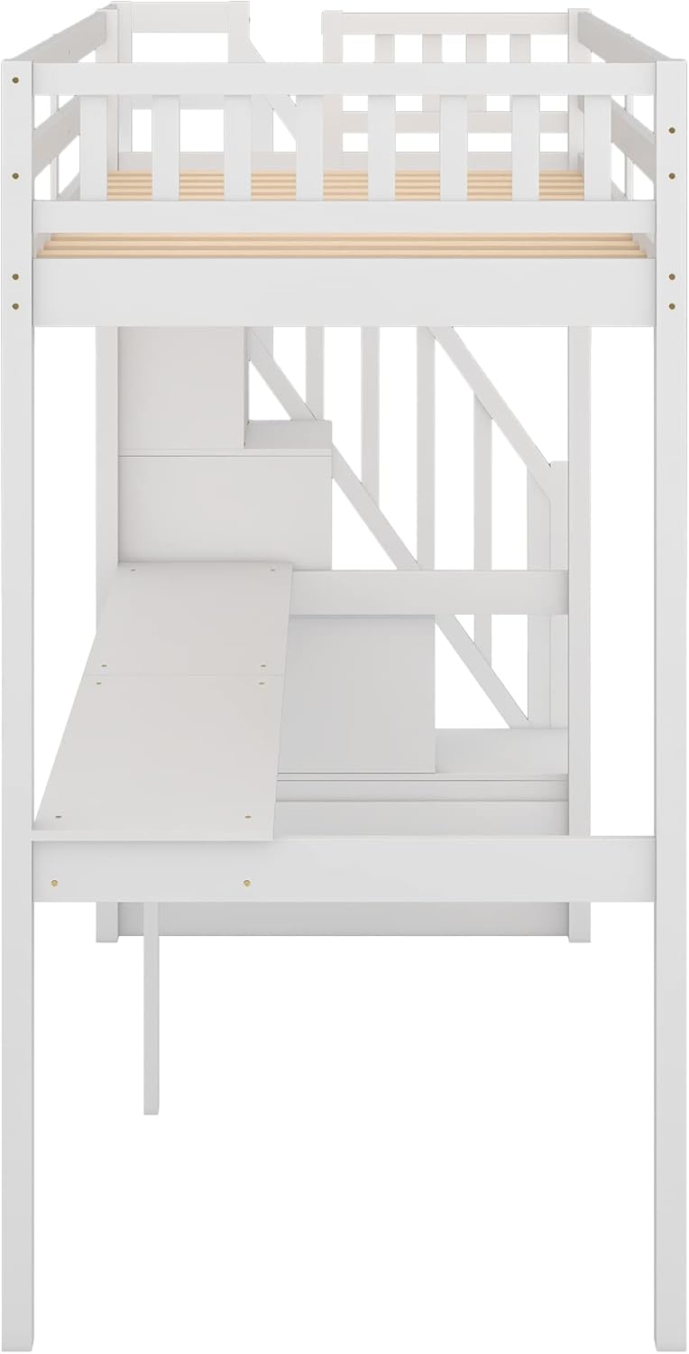 MERITLINE Twin Loft Bed with Desk and Stairs,Wooden Loft Bed Twin with Storage, Kids Loft Bed with Steps for Girls Boys Bedroom, Dorm(Twin,White)