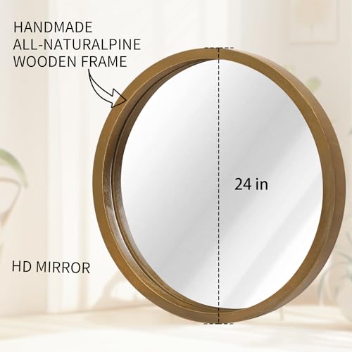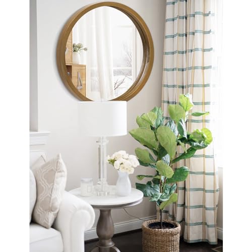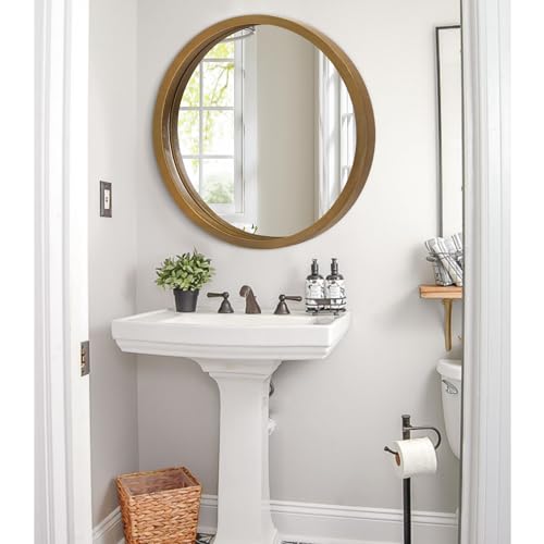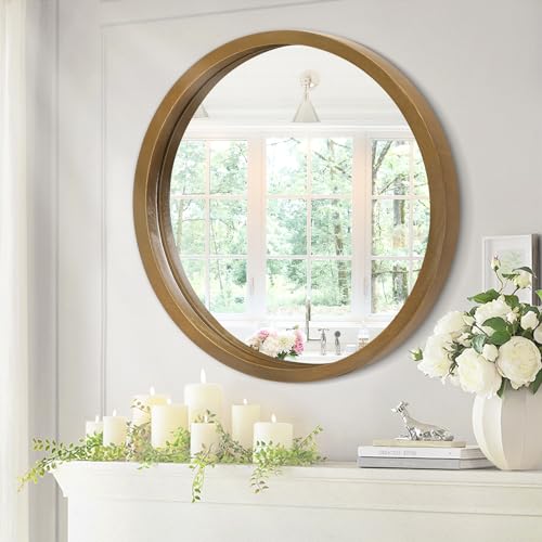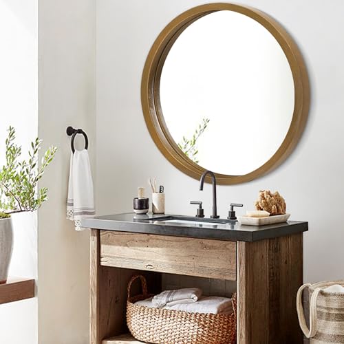 Circle Wall Mirror 16 Inch Wooden Round Wall Mirror for Bathroom Vanity, Gray Circular Mirror Washroom Wall Mounted Wood Frame Make up Mirror for Living Room, Bedroom, Dorm