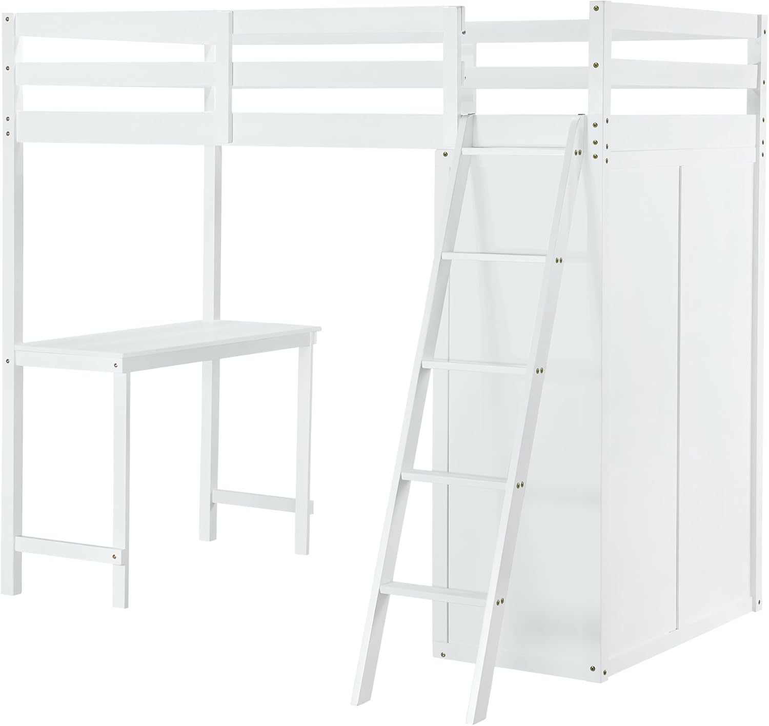 Wooden Loft Bed with Desk and Storage Wardrobe, Twin Size High Loftbed with Closet, for Kids Teens Adults Bedroom, White