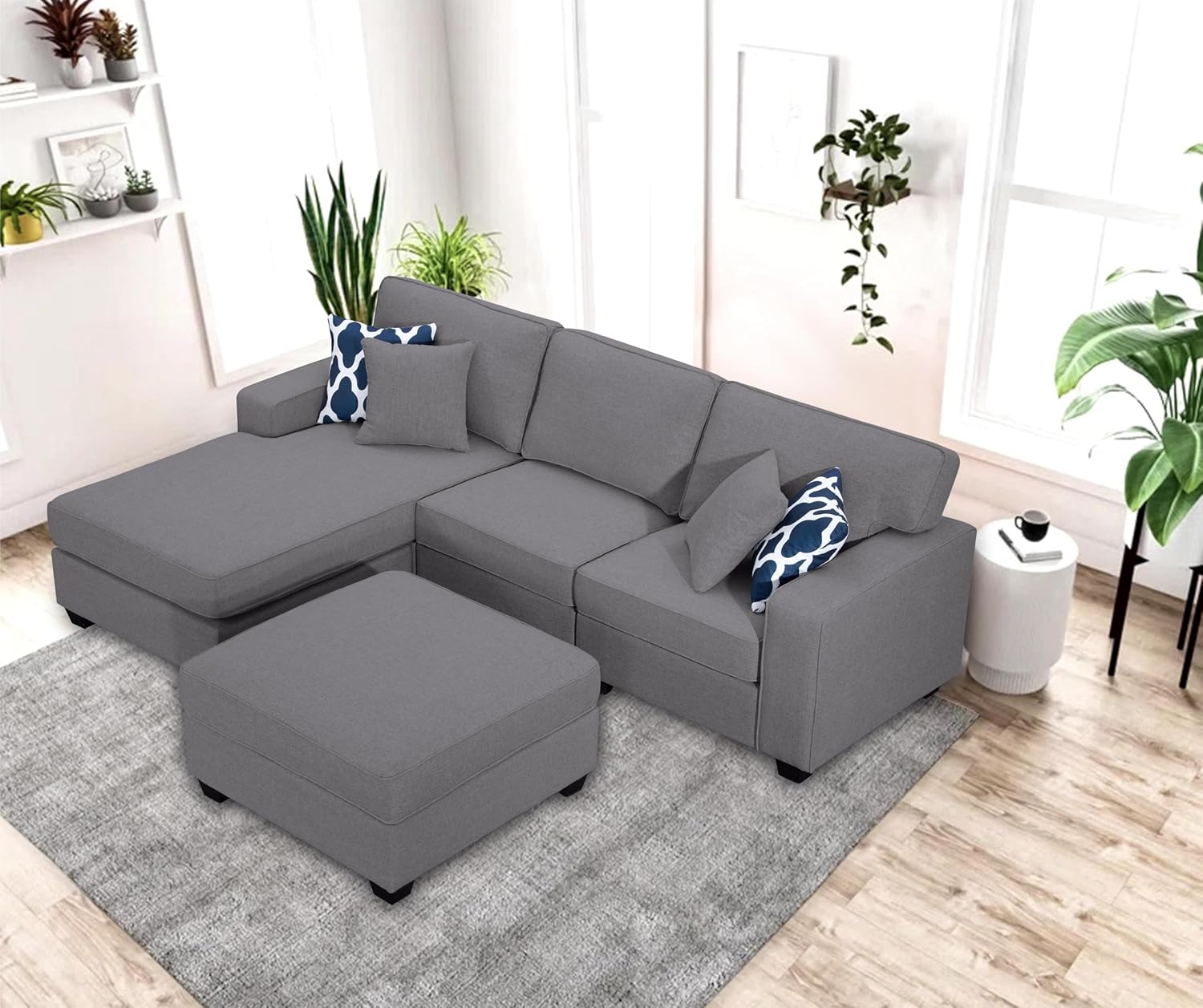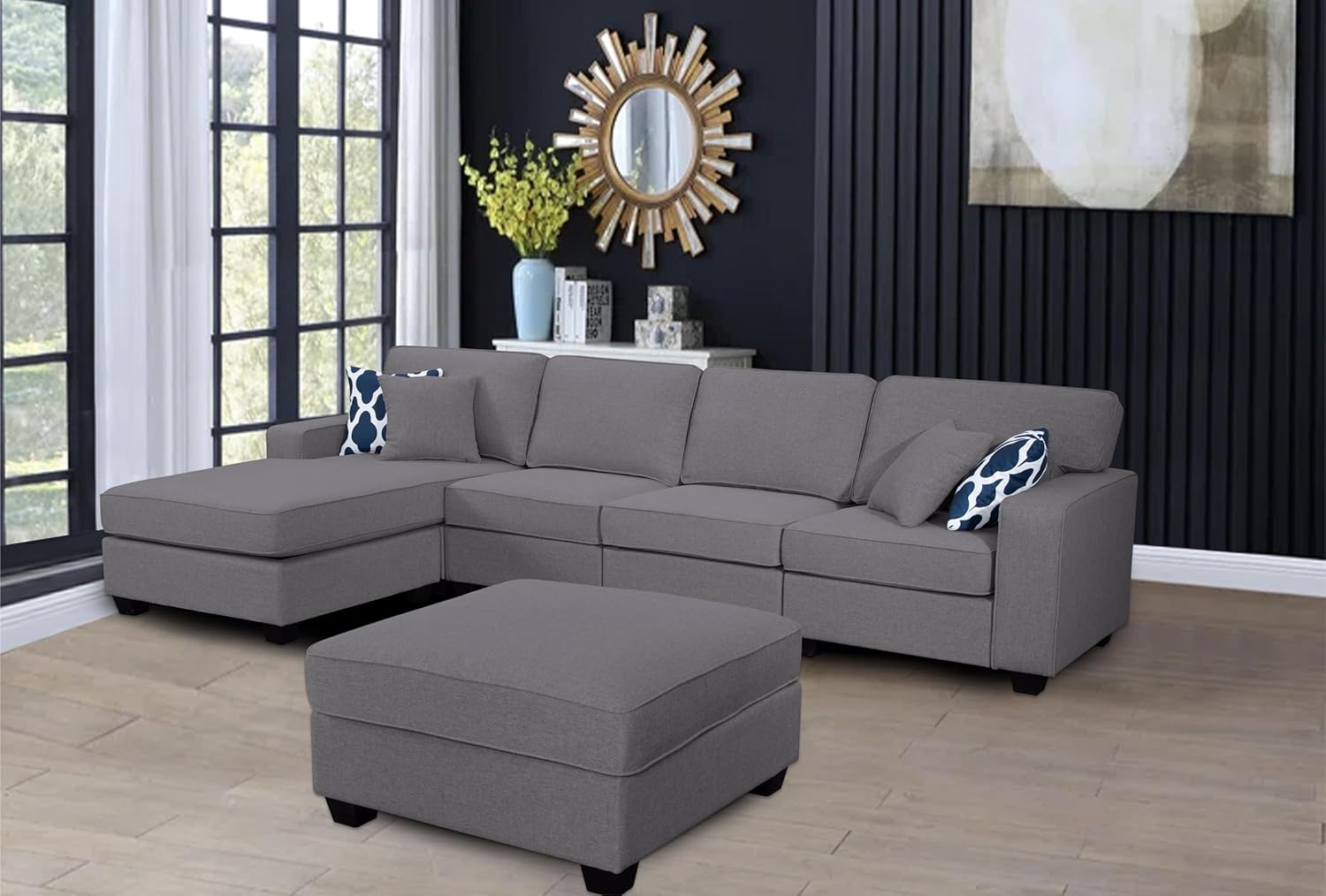 103'' Reversible Modular Sofa Couche with Ottoman Sectional, Dark Grey