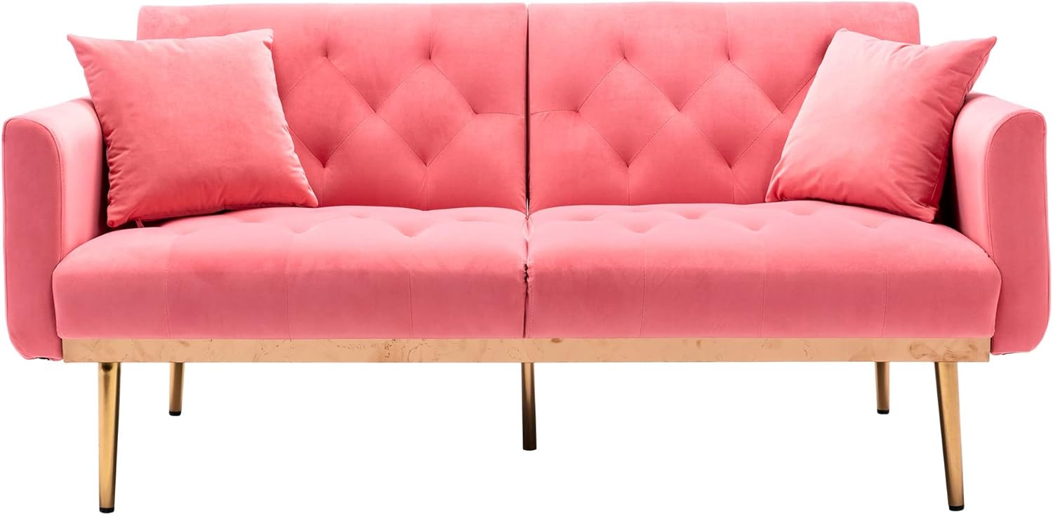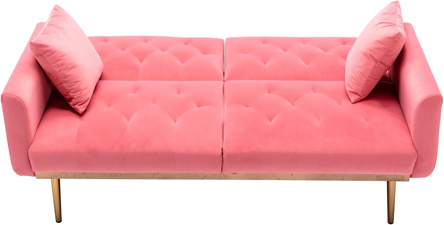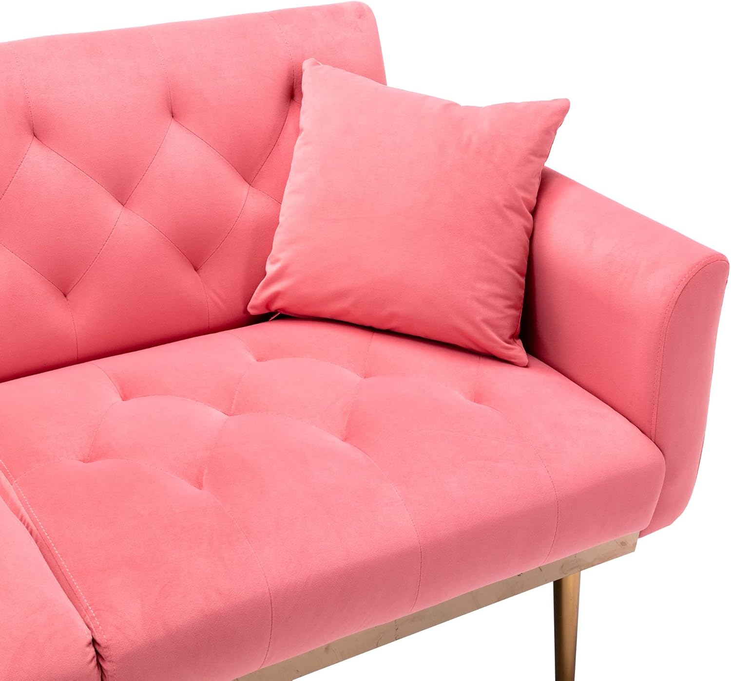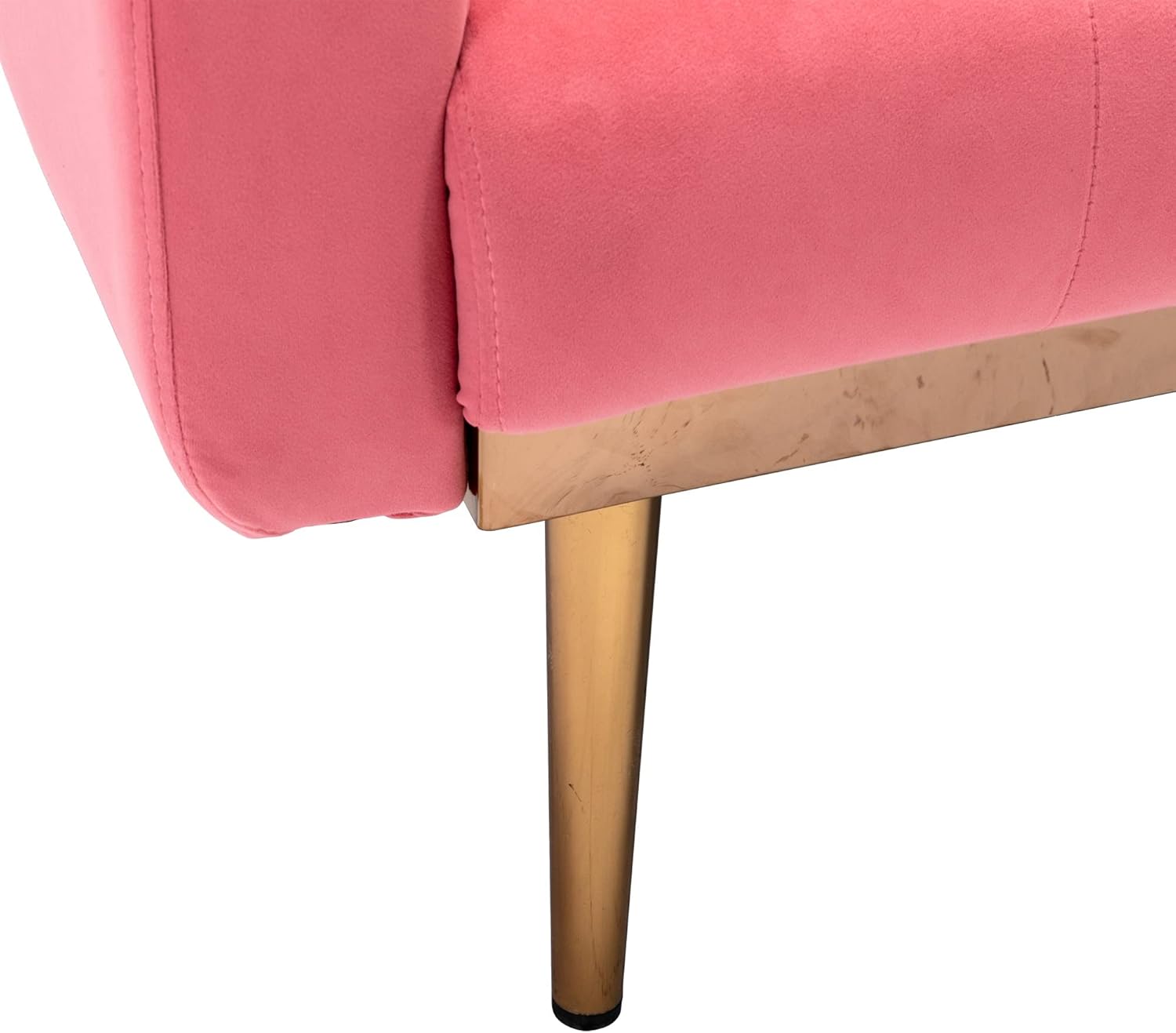 Velvet Button Tufted Sofa Bed with armrest Pink Suitable for Living Room, Bedroom and Office