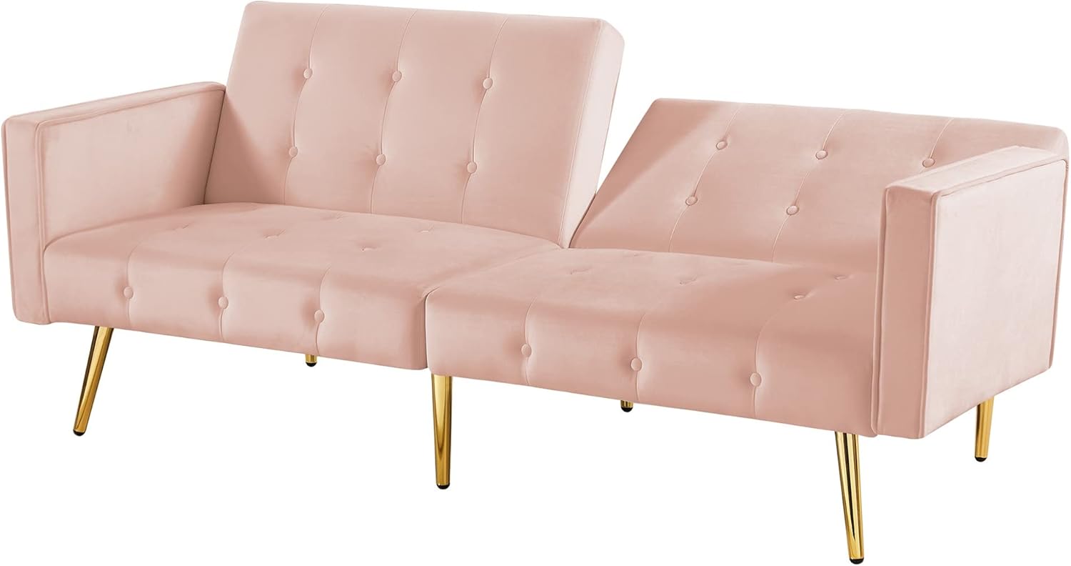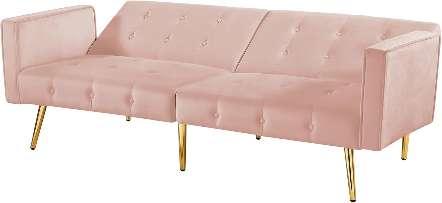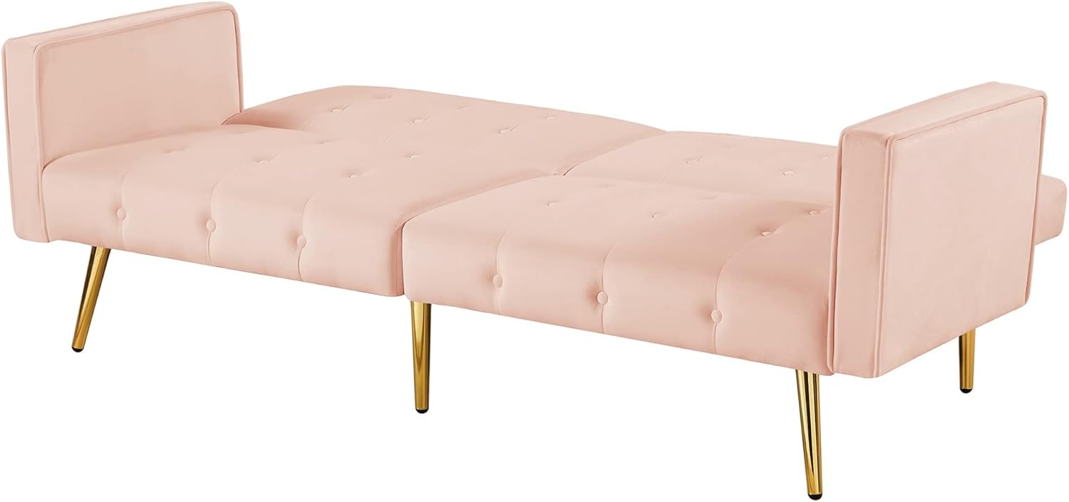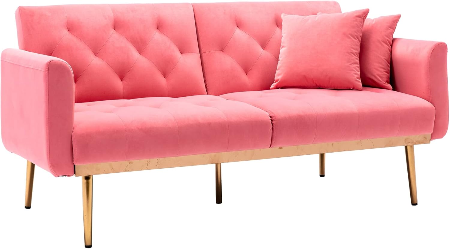 Velvet Button Tufted Sofa Bed with armrest Pink Suitable for Living Room, Bedroom and Office