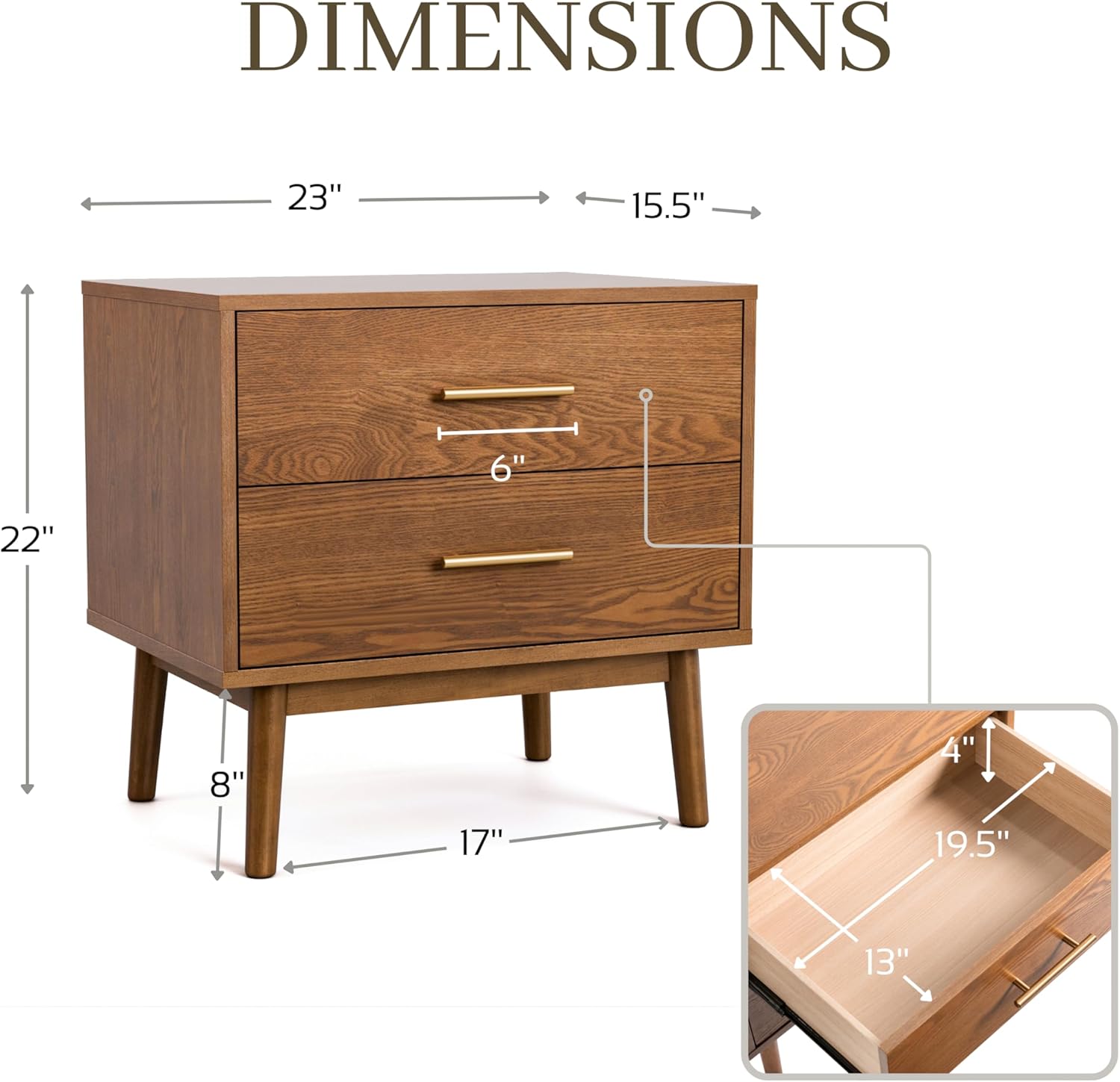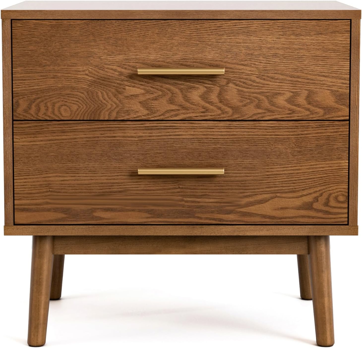 Furniture of America Wyatt Modern Solid Wood Nightstand with Drawers and Round Tapered Legs, Small Bedside Table, Wooden Night Stand for Bedroom, Guest Room, Dorm, Walnut