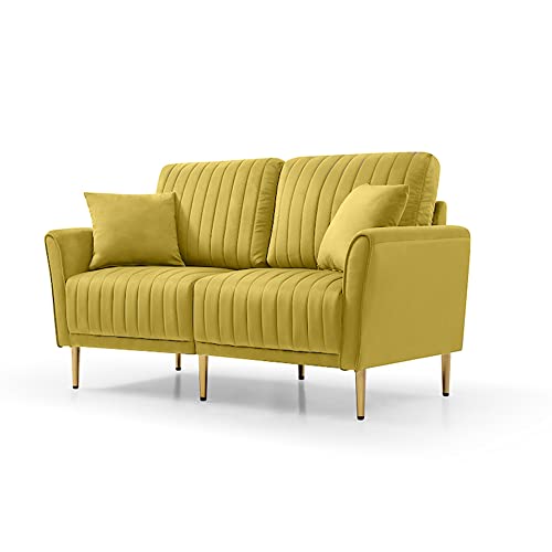 Velvet Sofa with 2 Throw Pillows,Chesterfield sofa Living Room Couch two Seater Couch with 6 Gold Metal Legs,W57" Upholstered Couches,Removable Loveseat sofas for small Spaces Bedroom Apartment Black