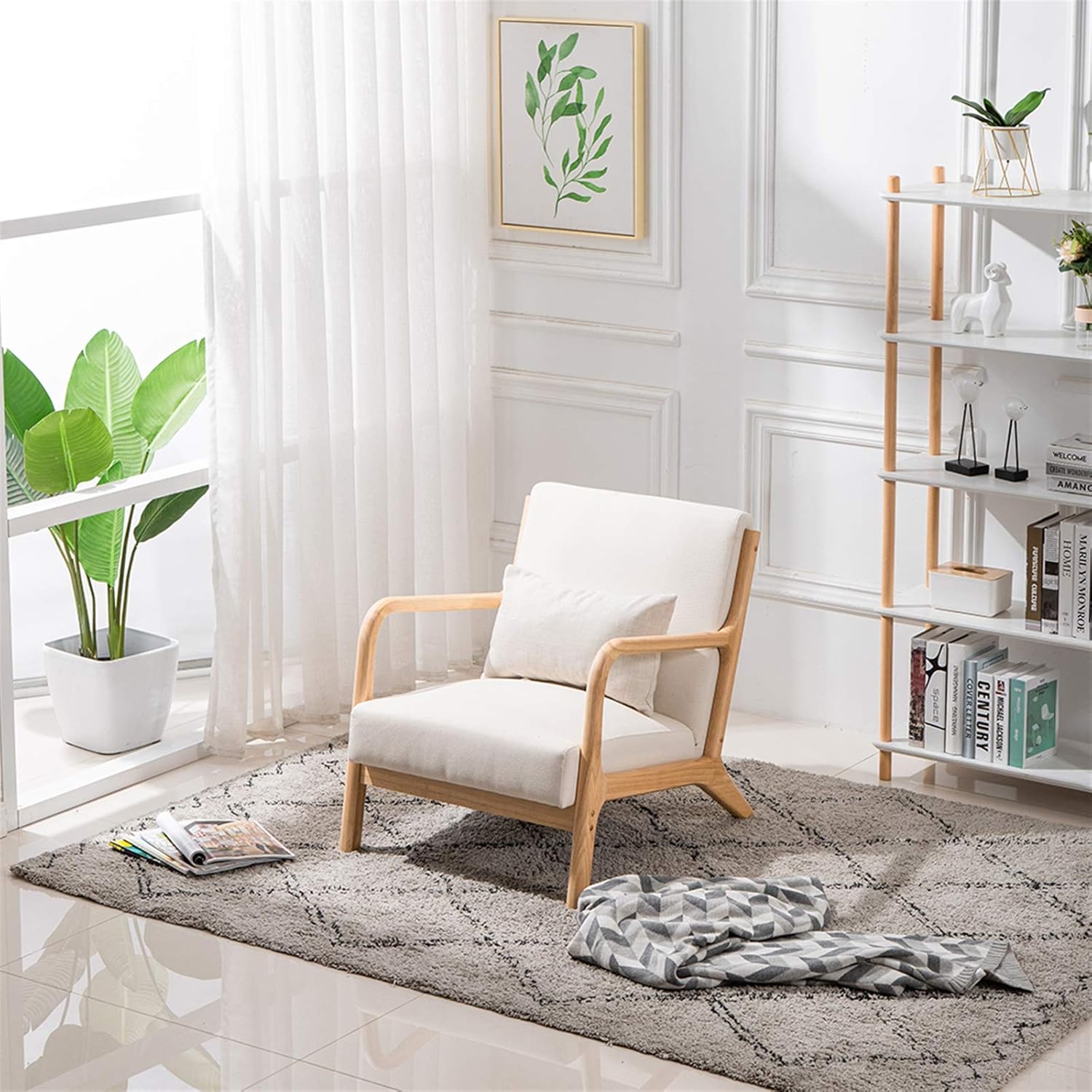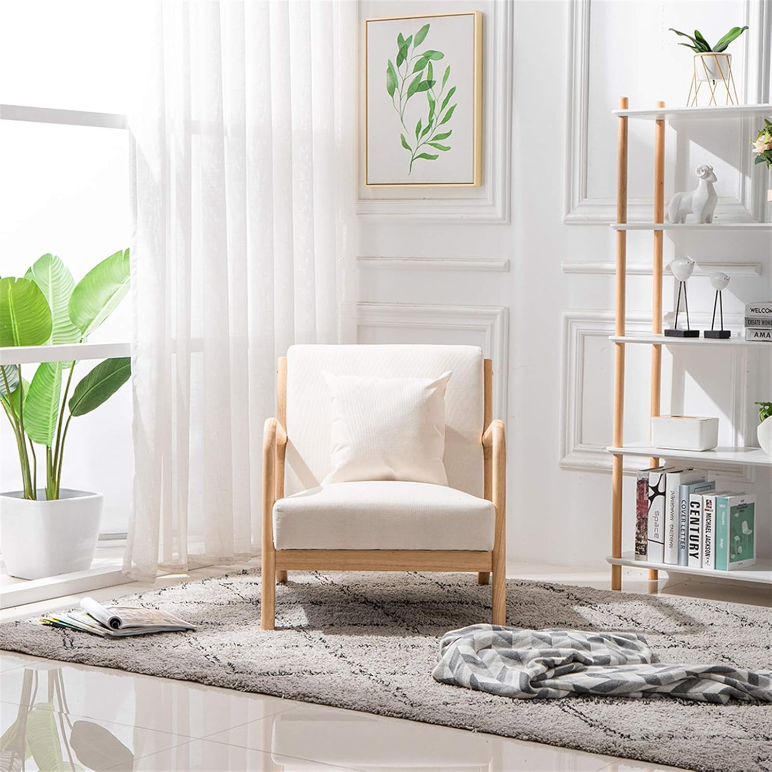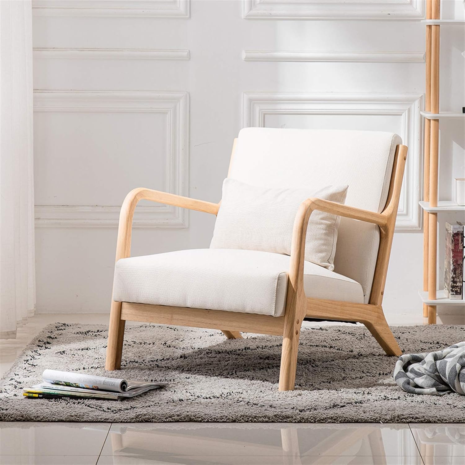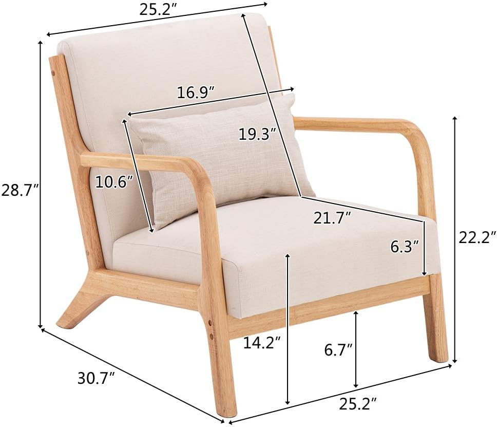 Fabric Oak Sofa Beige (66 x 68 x 75cm), Brown