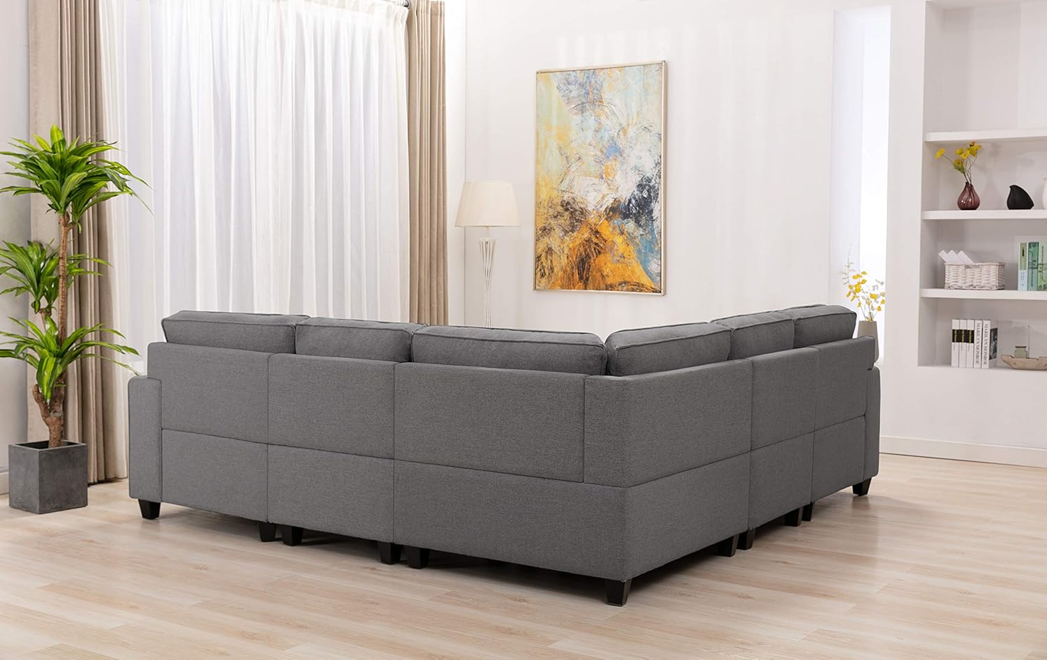 Symmetrical Modular Seating Component with Ottoman Sofas Sectional, 124", Dark Grey
