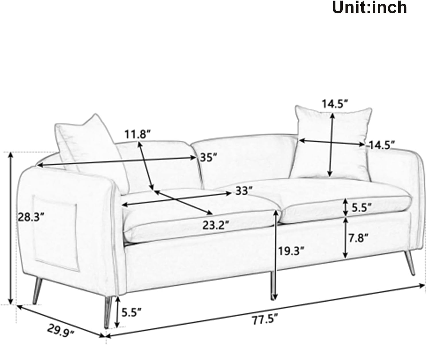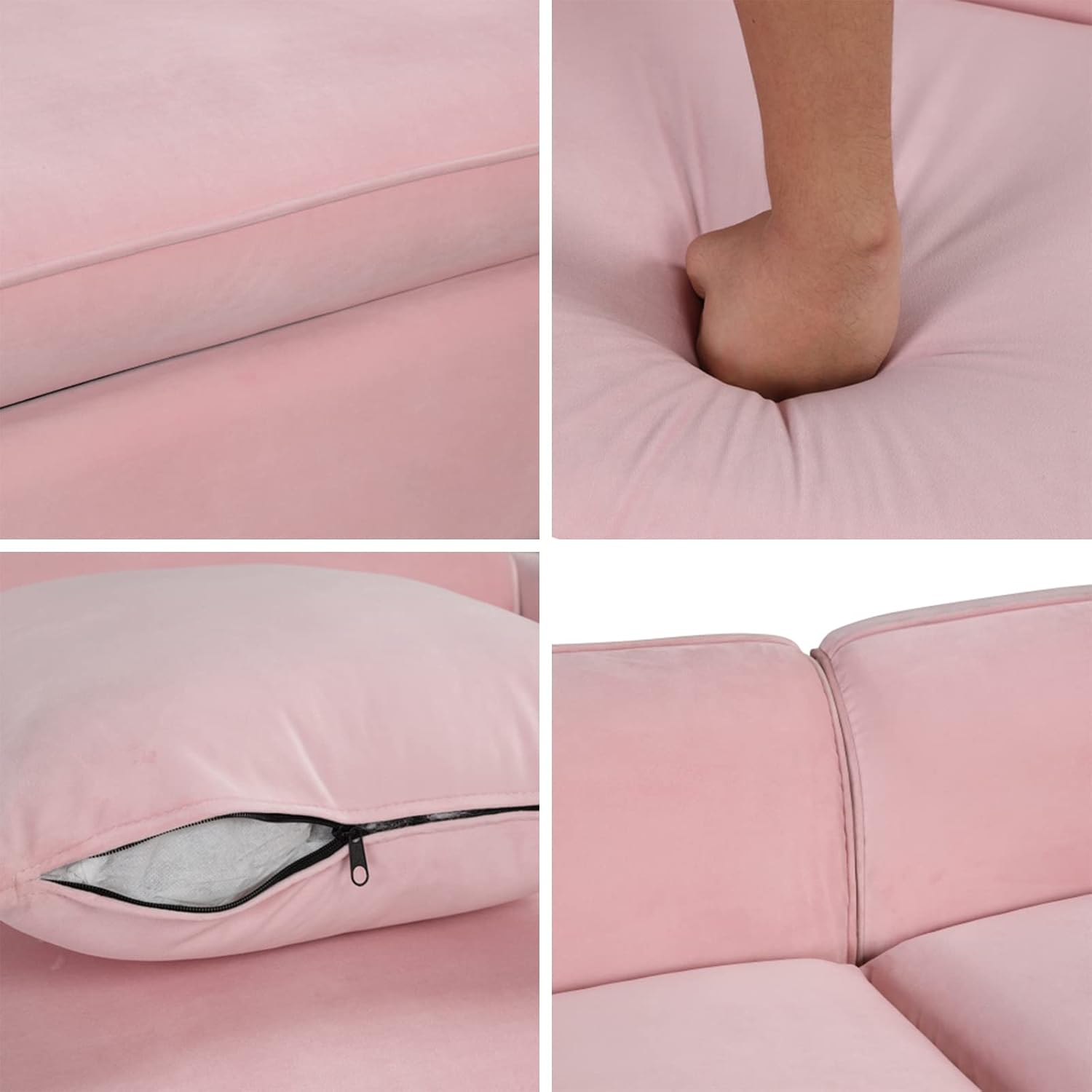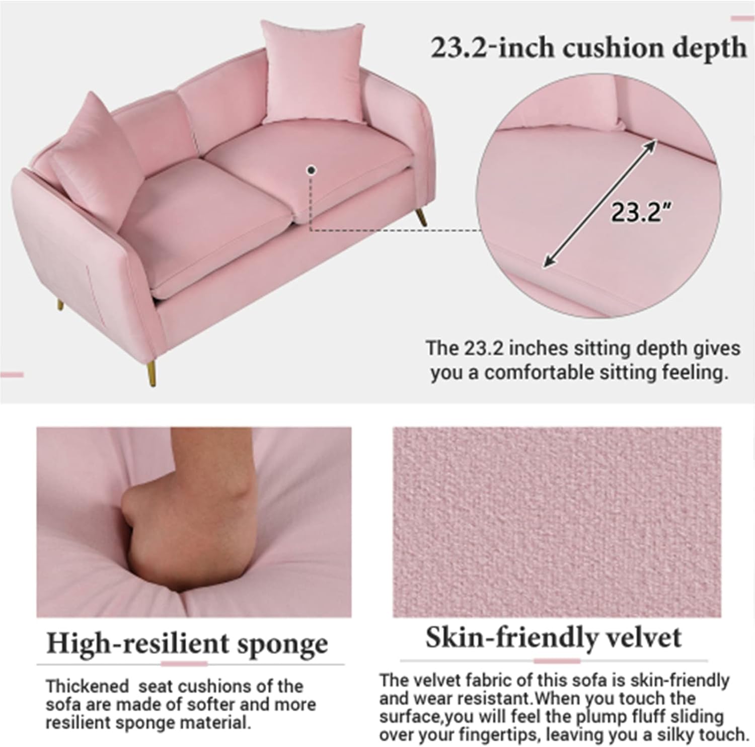 77.5" Pink Couches Apartment Furniture,Velvet Upholstered with 2 Pillows for Living Room Bedroom,3-Seat Couch with Armrest Pockets