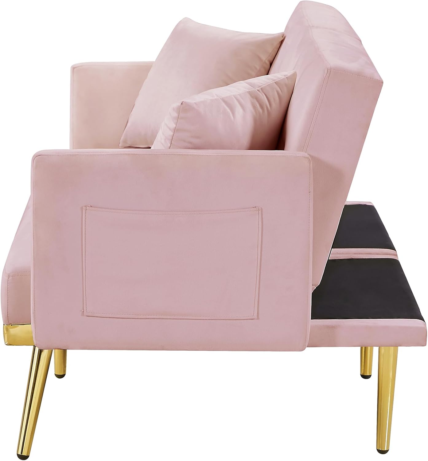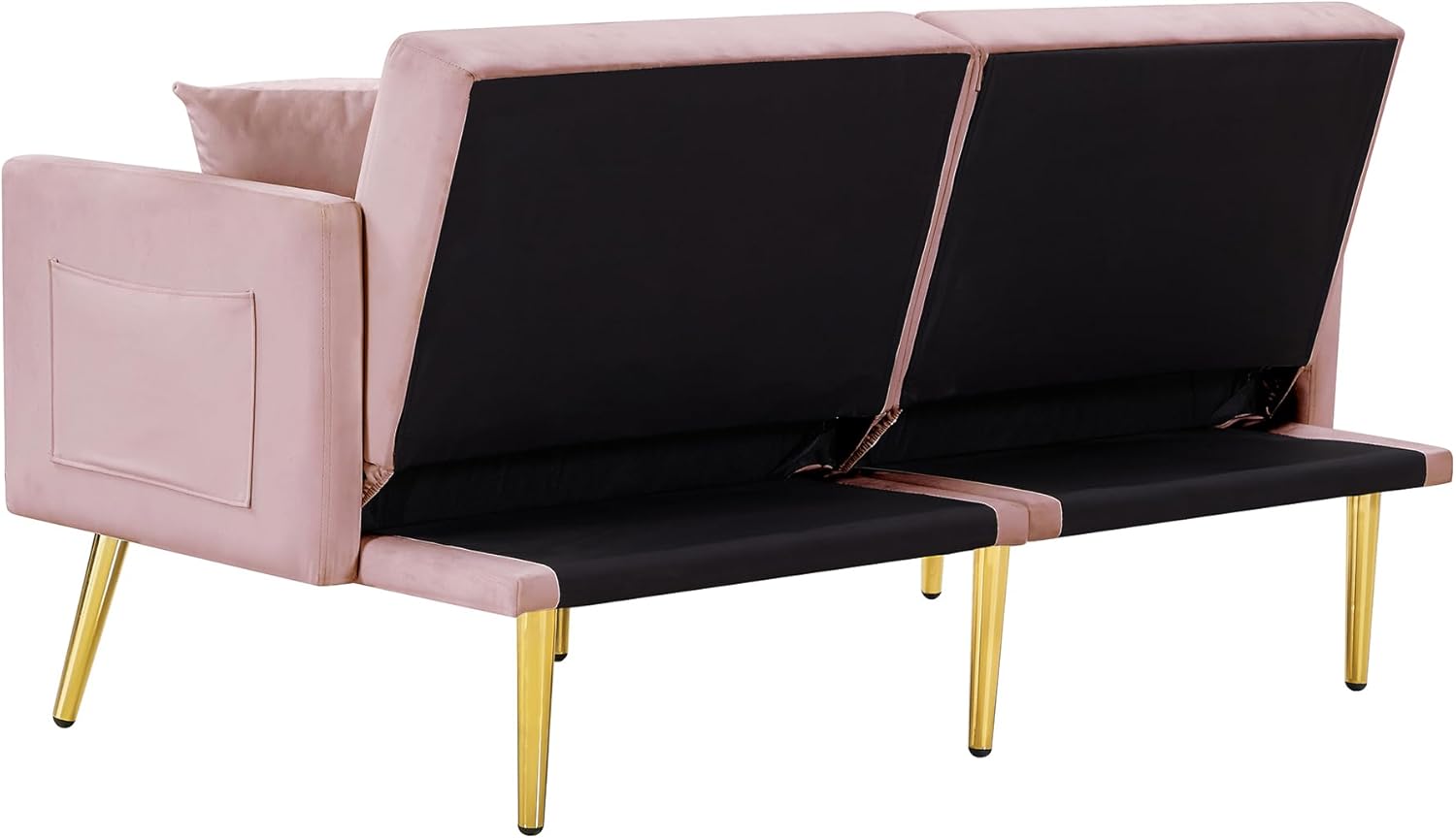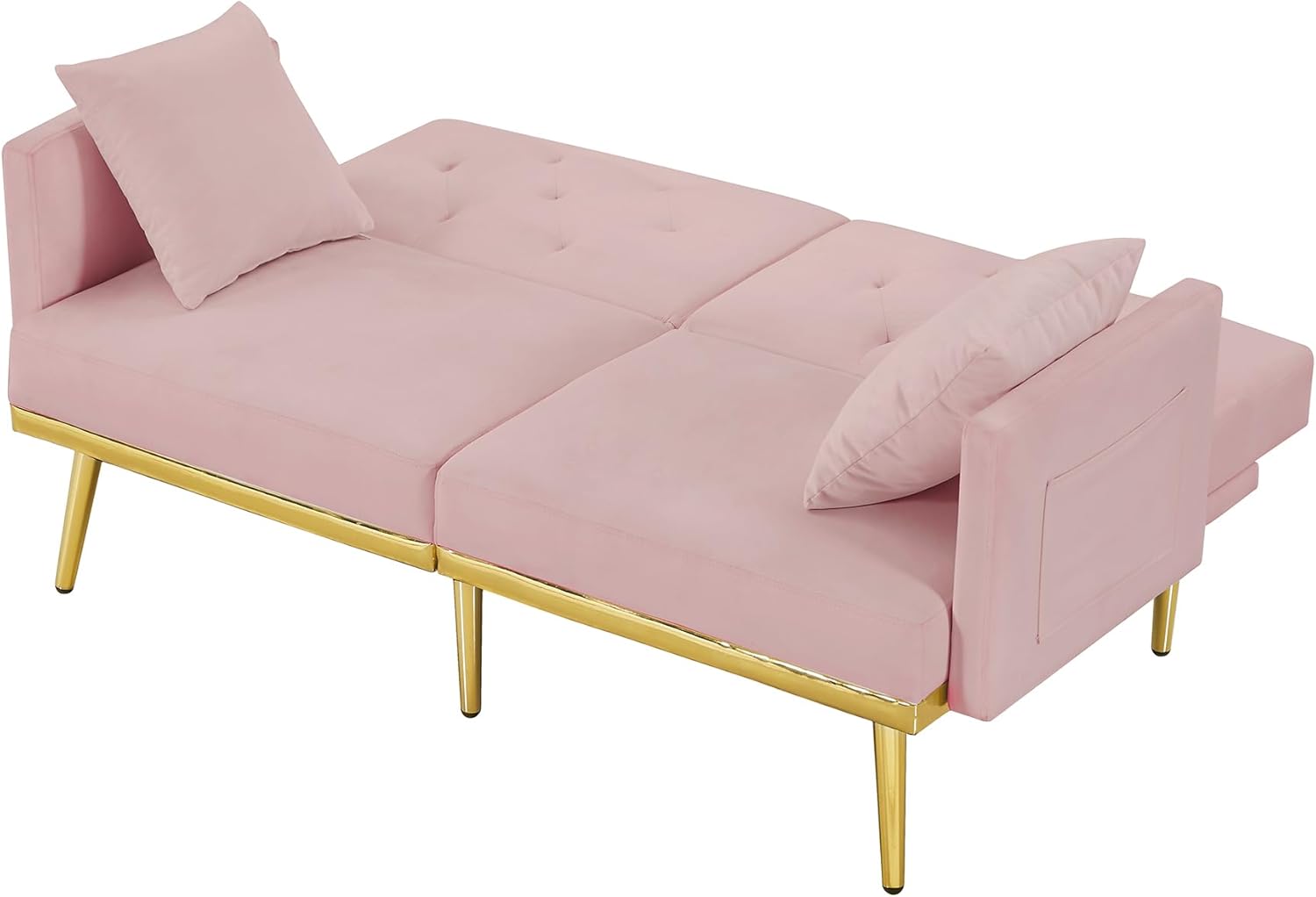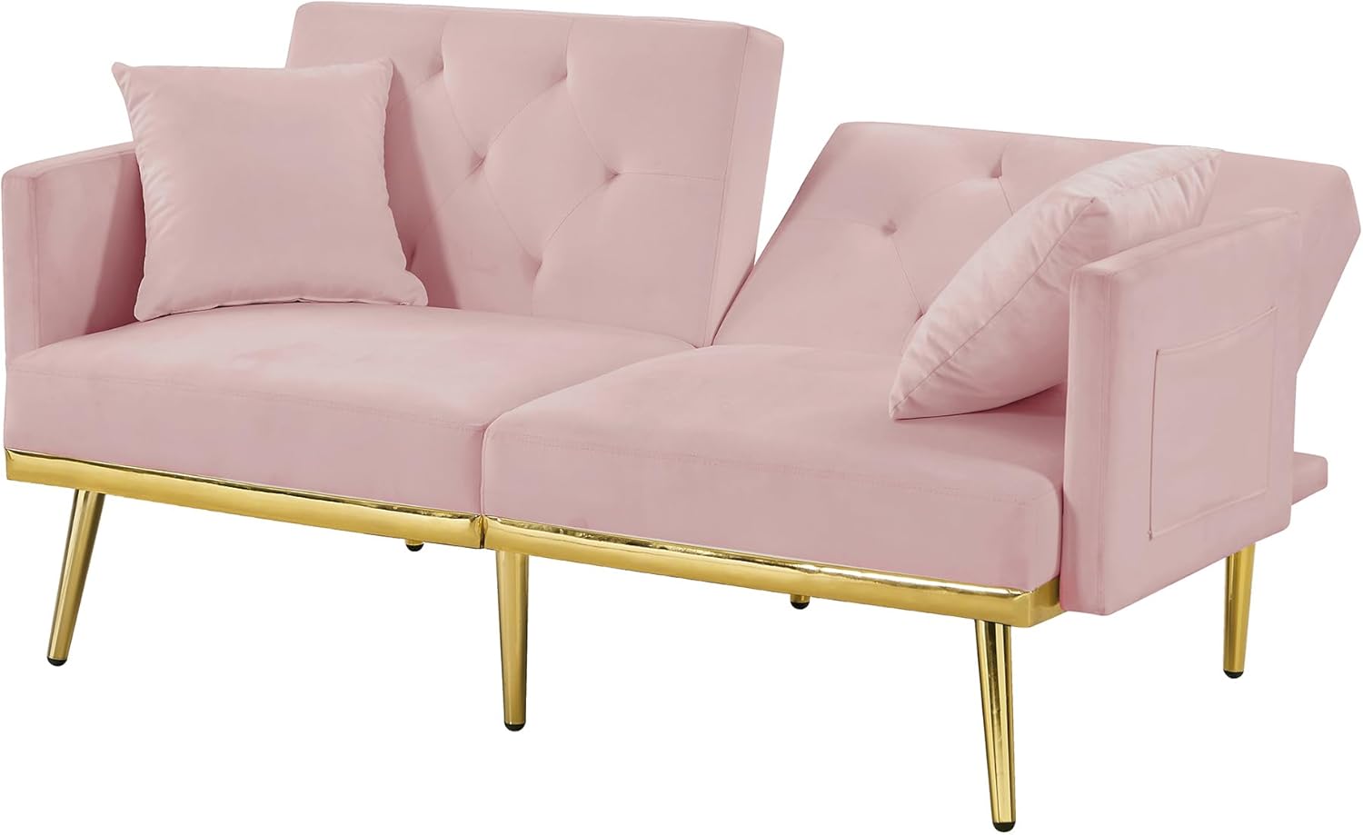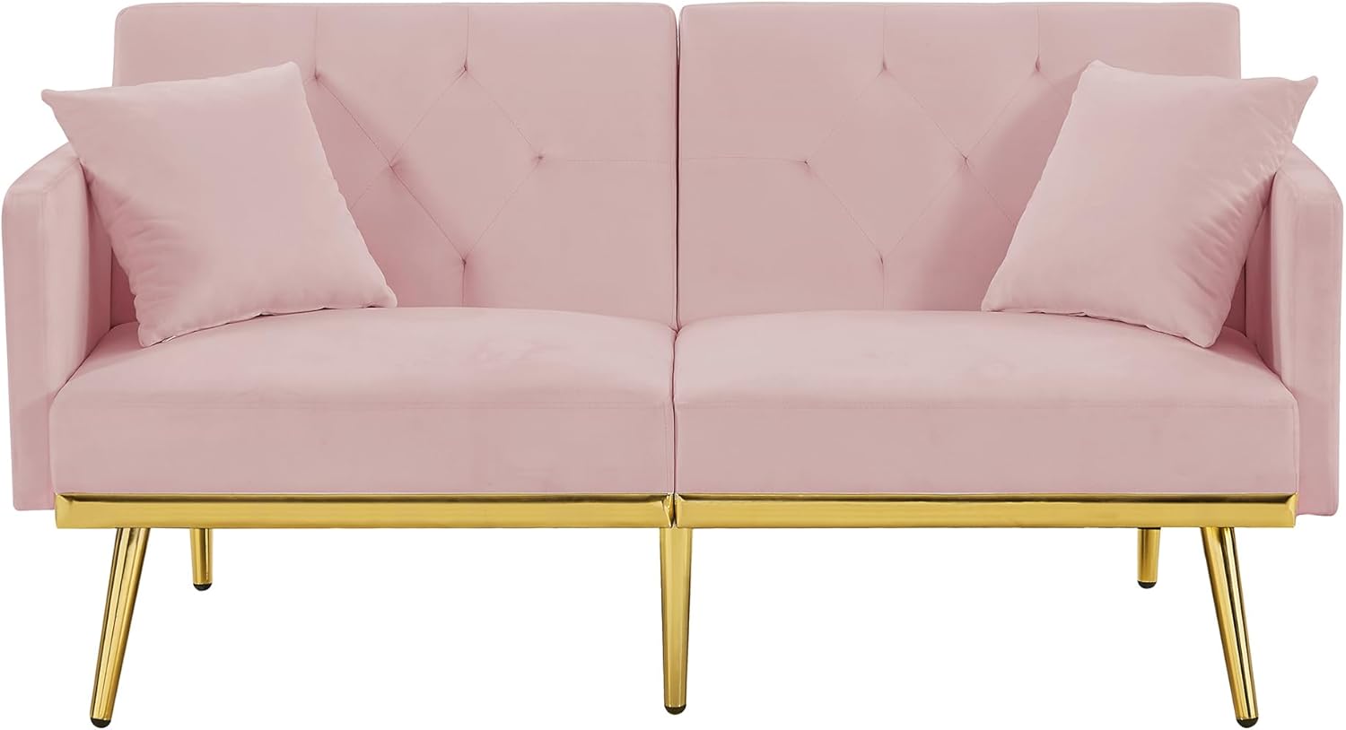 Modern Velvet 2 in 1 Futon Sofa Bed,Convertible Folding Sleeper Bed Couches with 2 Pillows,59" Tufted Recliner Love Seat with Golden Chrome Legs for Living Room Apartment Office,Rose