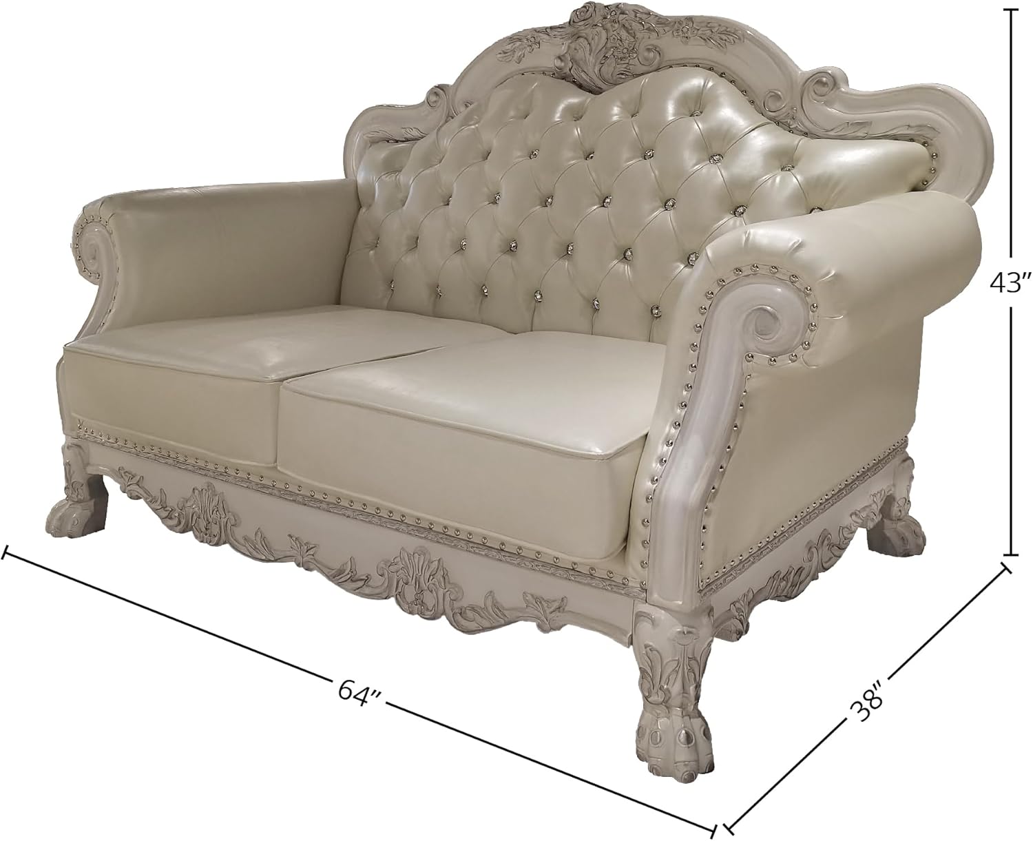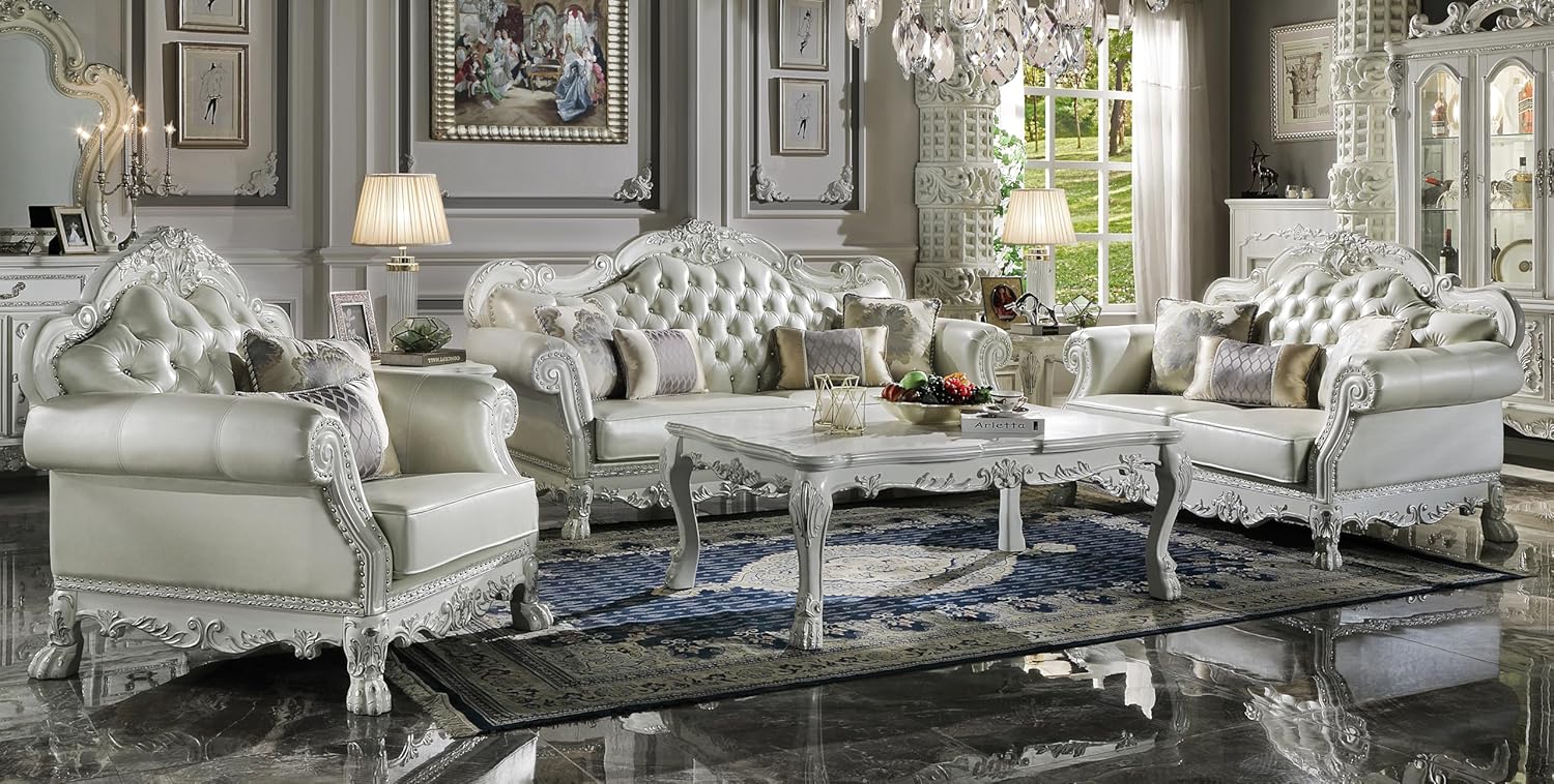 Acme Furniture Dresden Upholstered Faux Leather Loveseat with 3 Pillows in White