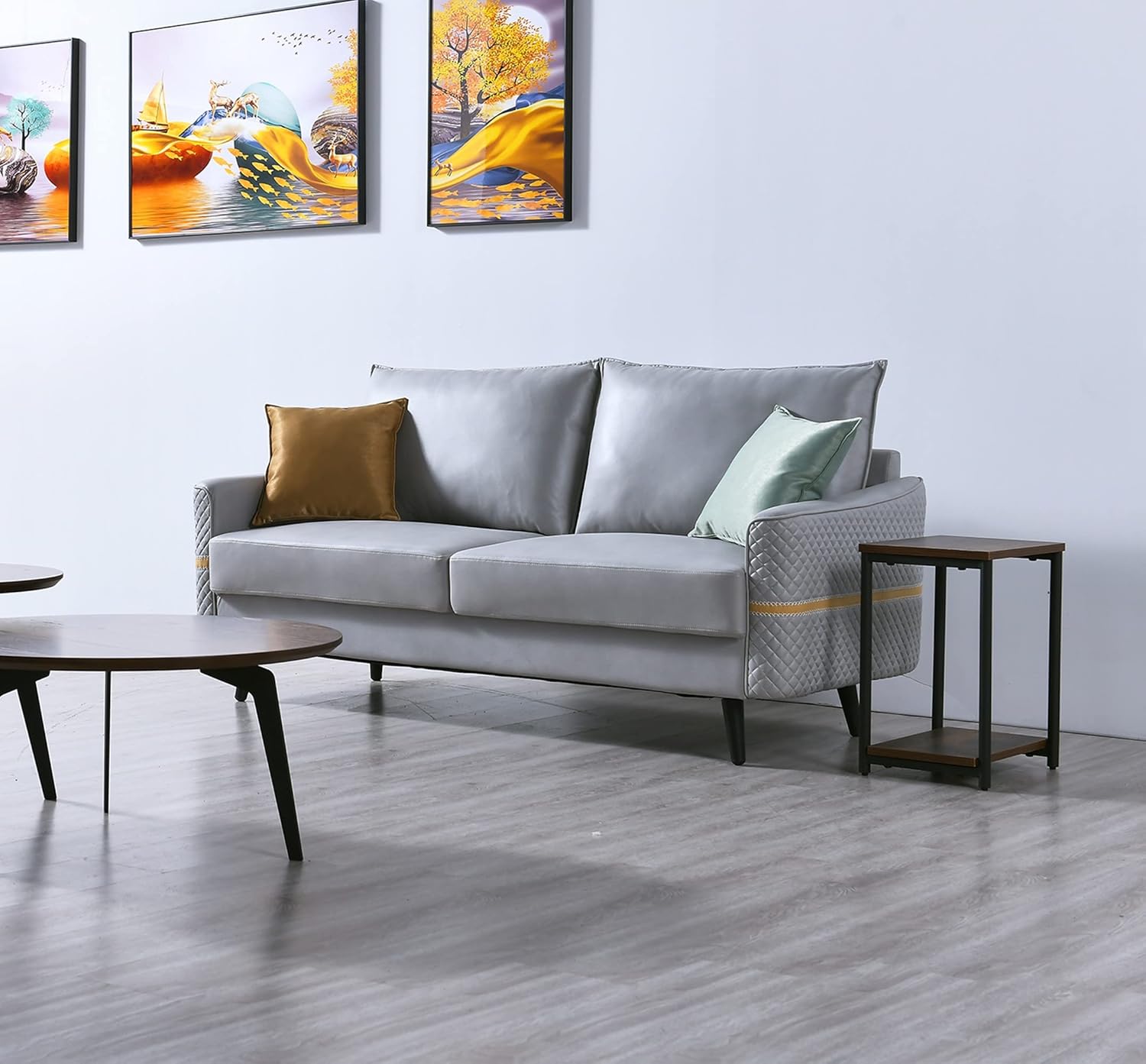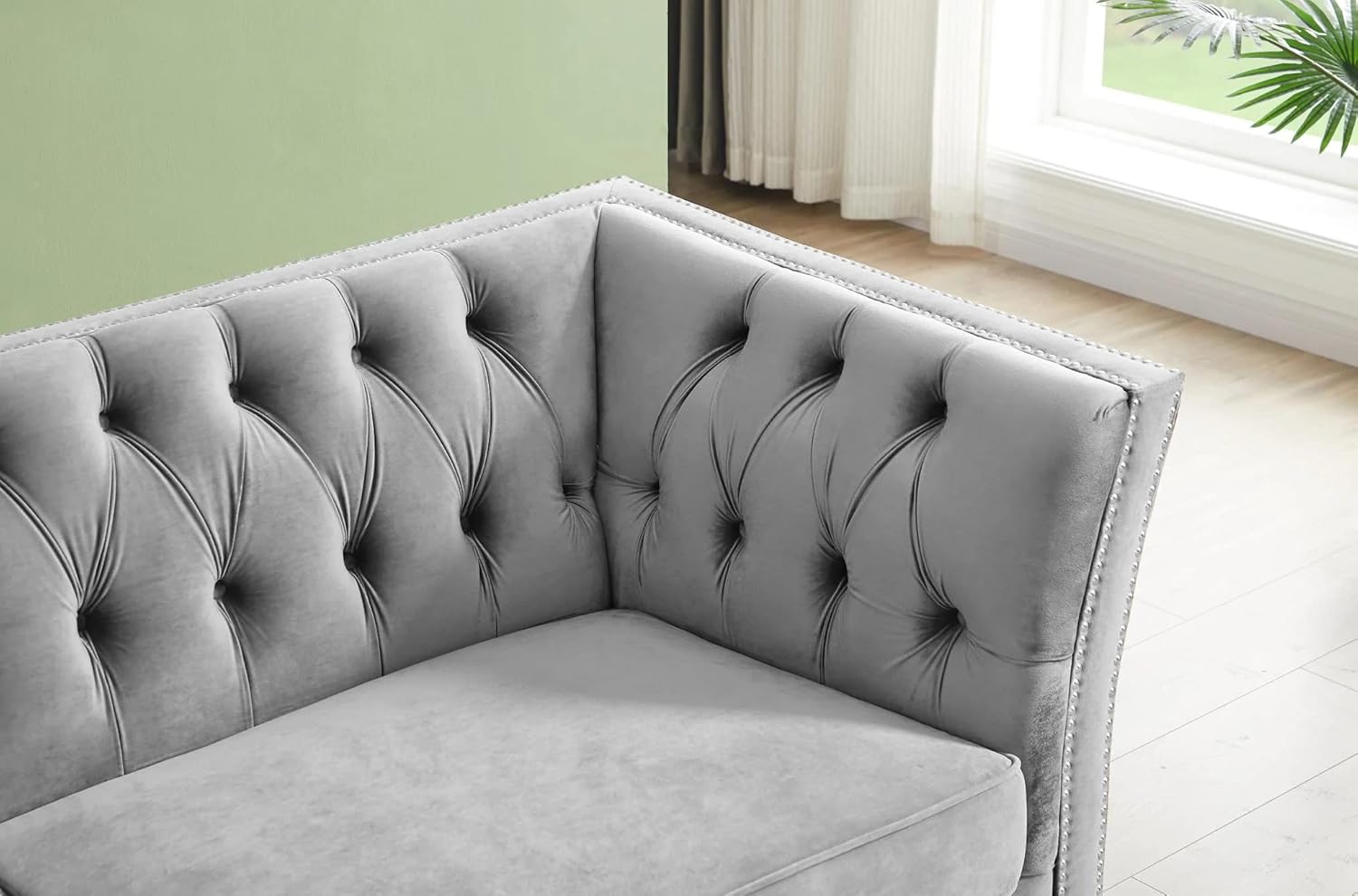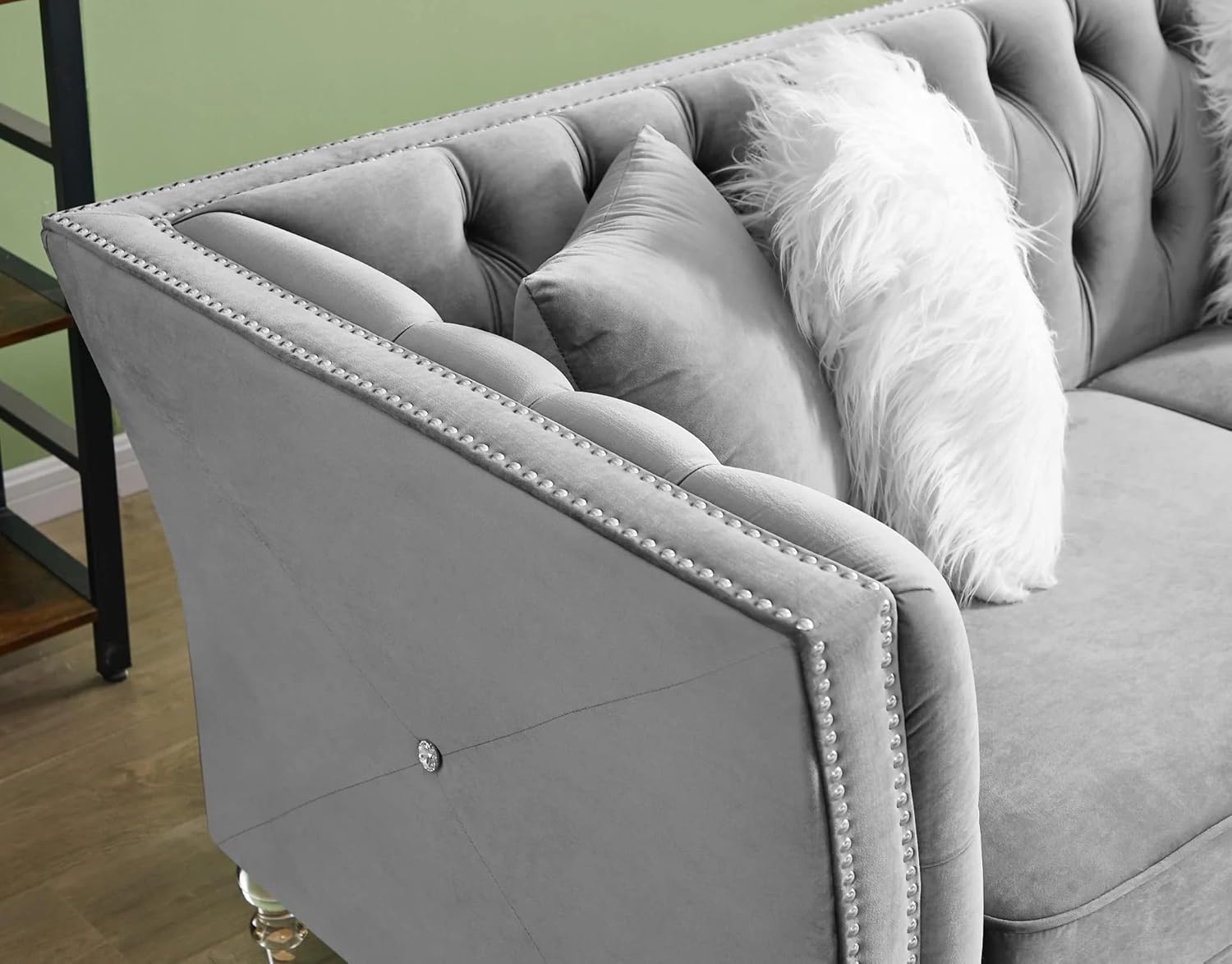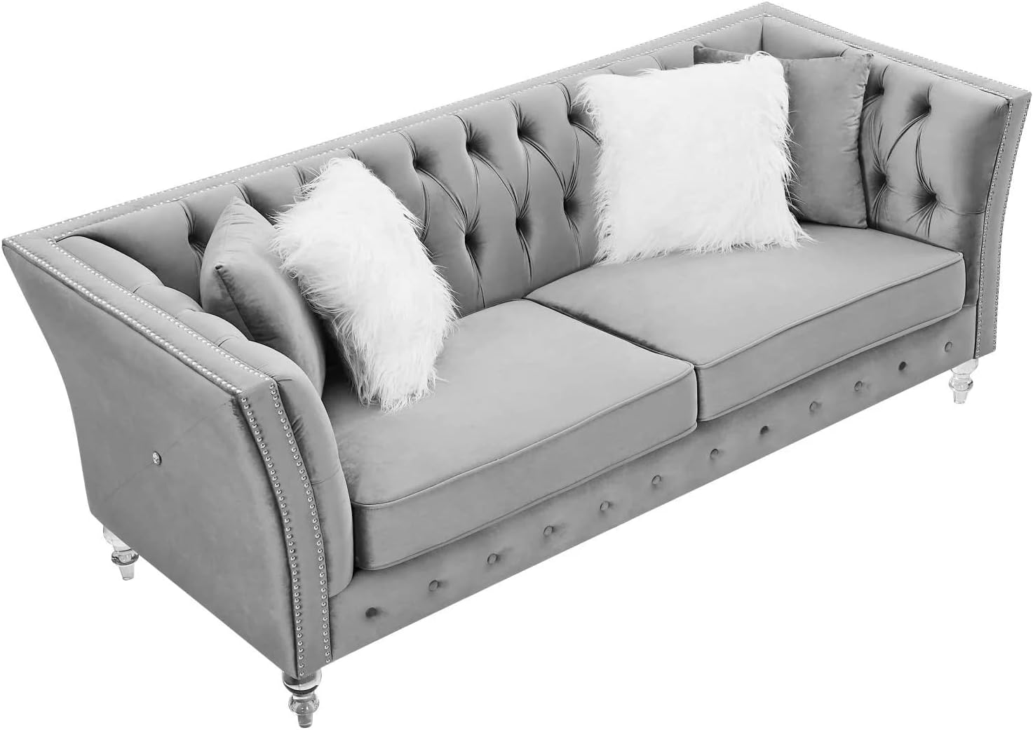 Solid Color Tufted Sofa for Living Room Gray