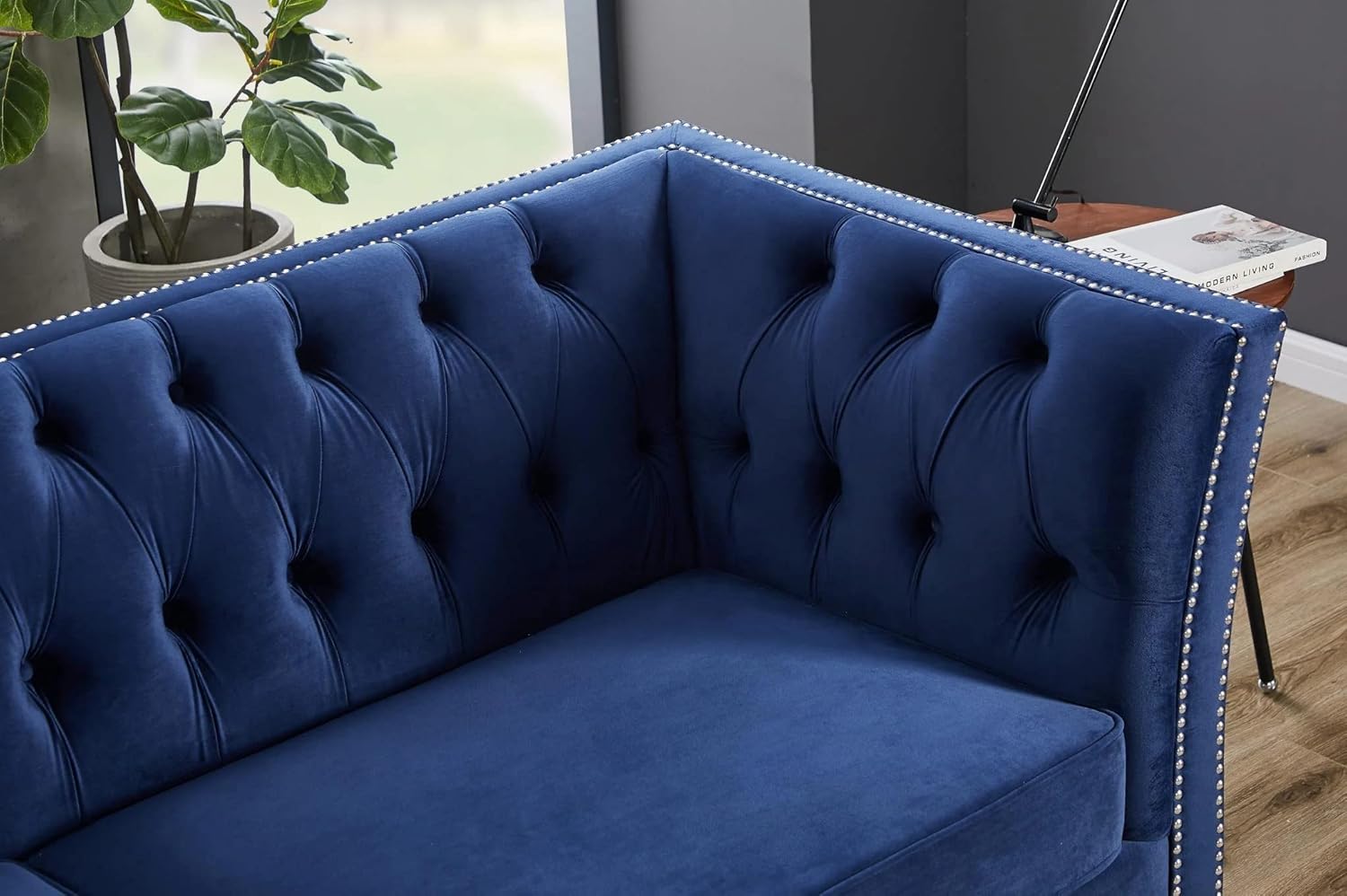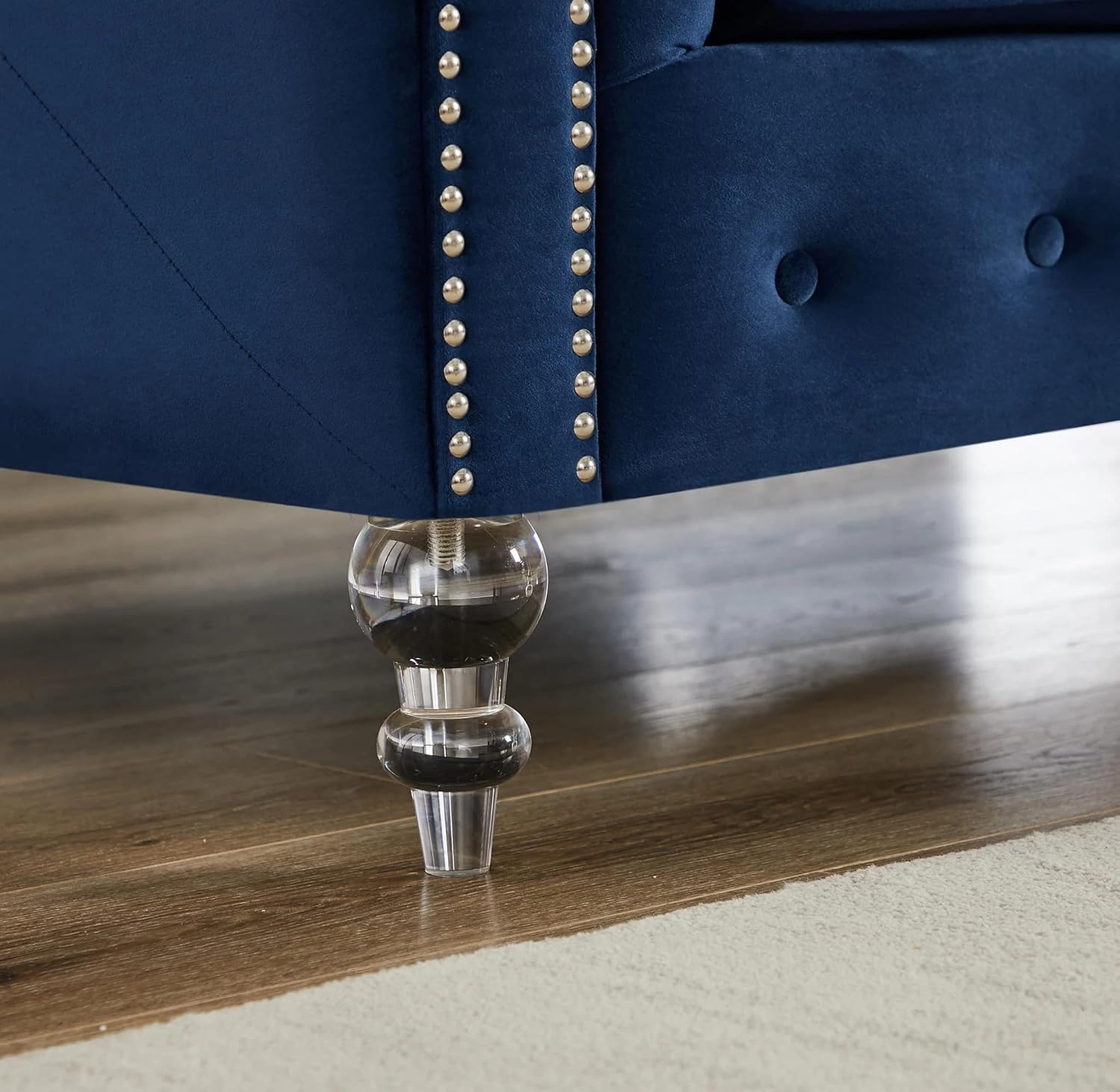Solid Color Tufted Sofa for Living Room Navy Blue