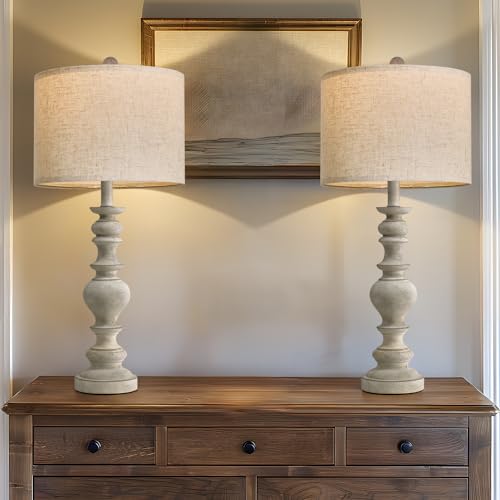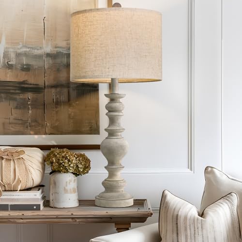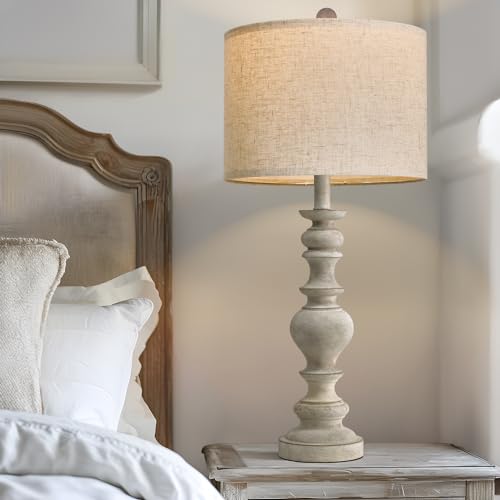 BOBOMOMO Resin 27.5" Farmhouse Lamps for Bedrooms Retro Side Table Lamps Bedside Lamp for Side Nightstand Living Room Black(1 Pack)