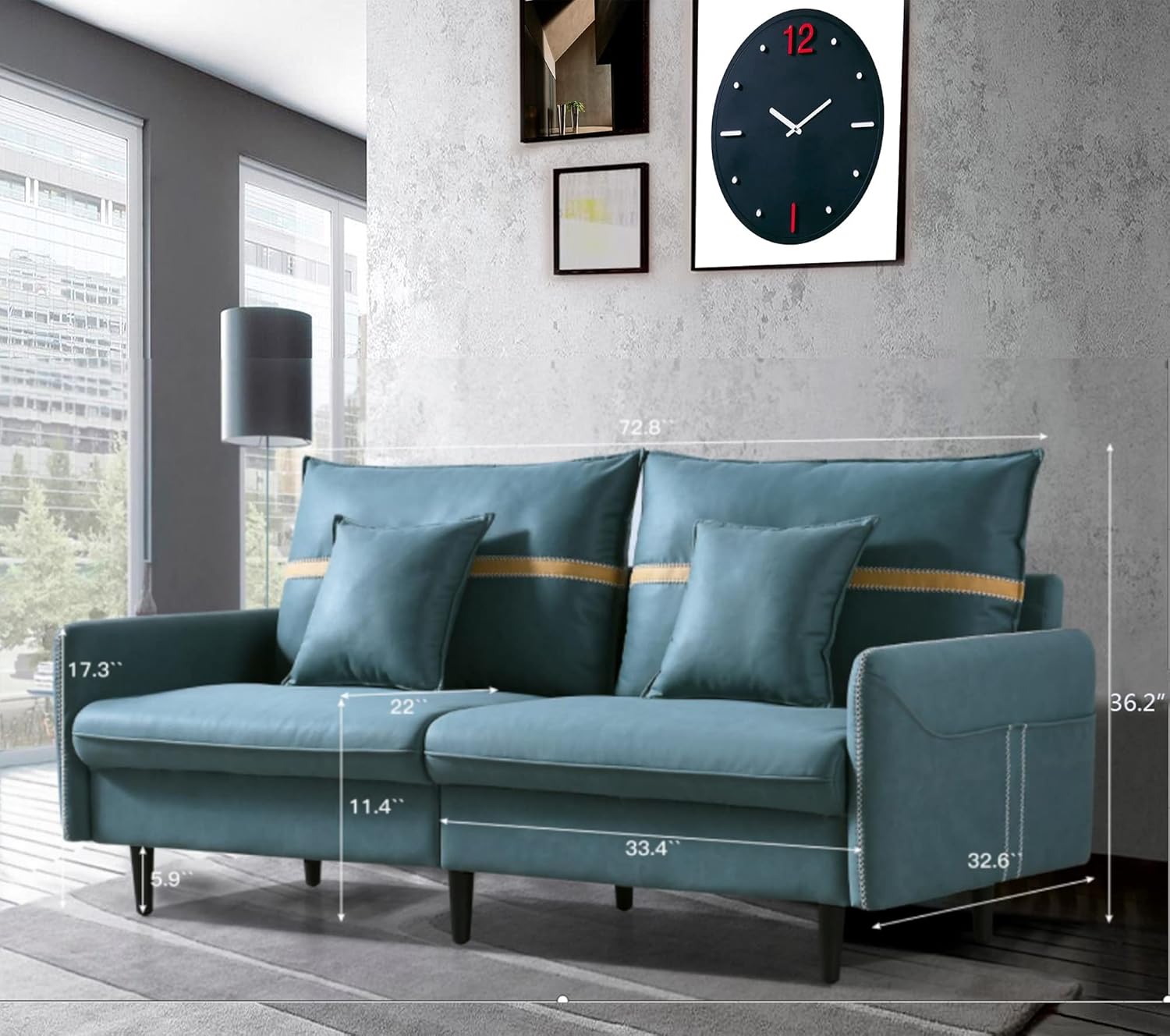 72 inch Sofa Couch, Mid-Century 3-Seat Tufted Love Seat for Living Room, Bedroom, Office, Apartment, Dorm, Studio