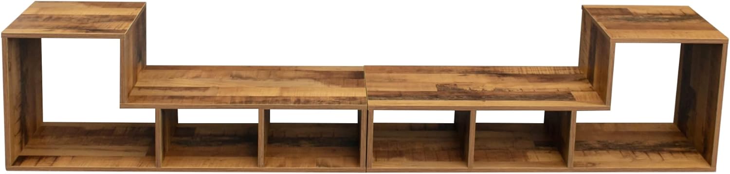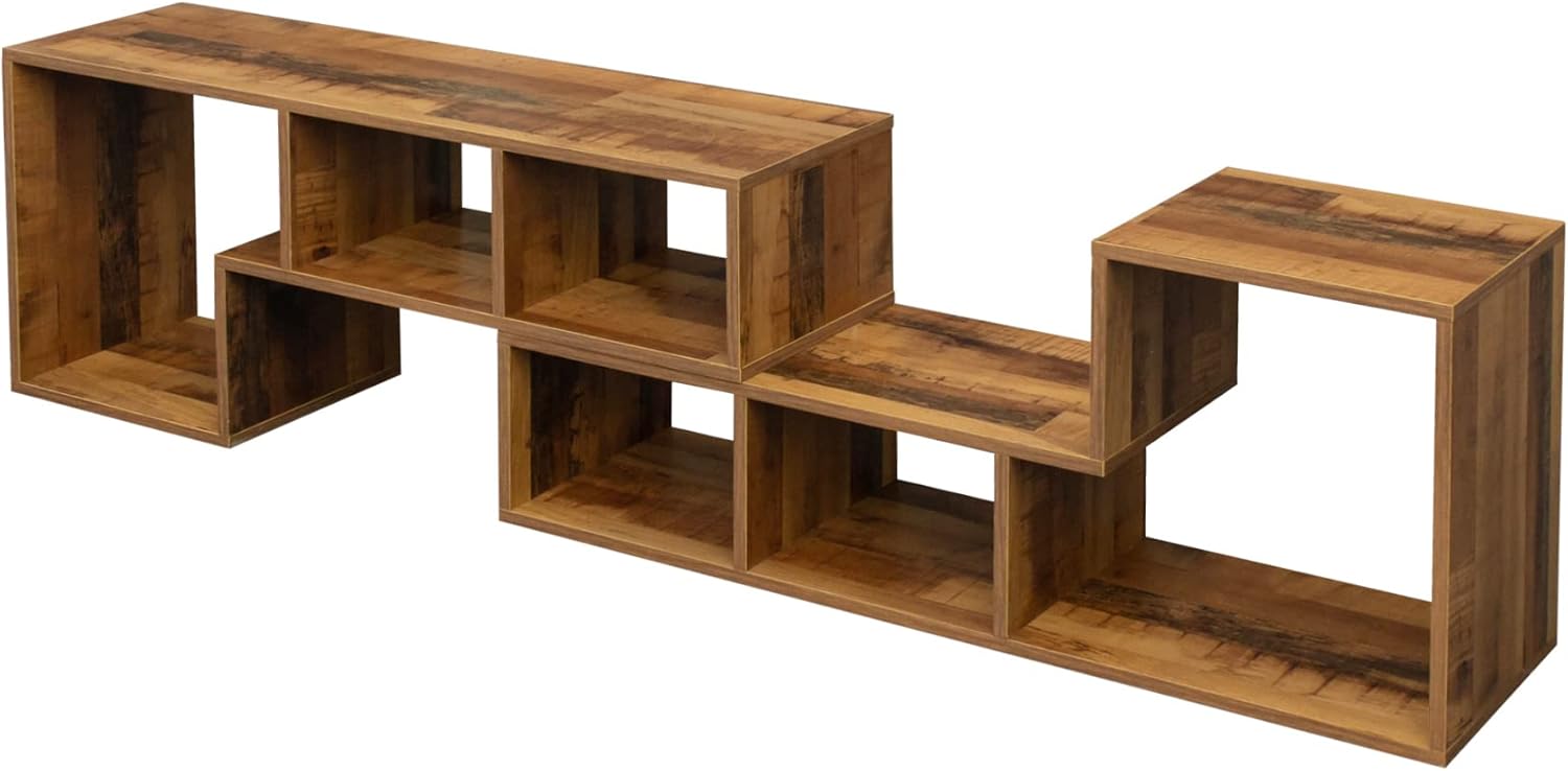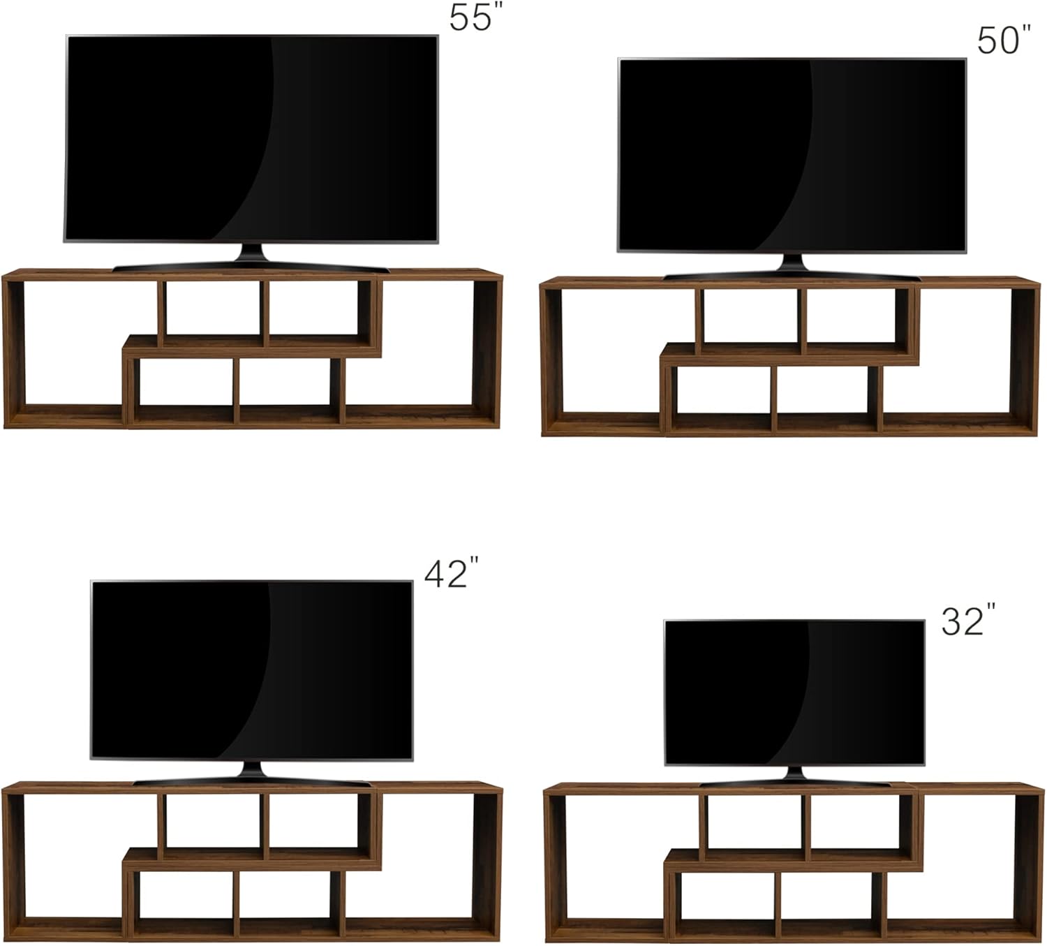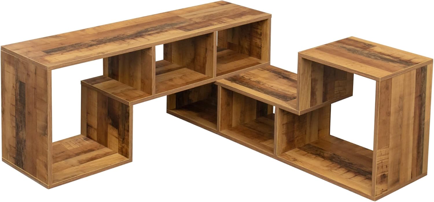 Sleek TV Stand Open Shelves Brown Adjustable L-shape Design & Particle Board Living Room Entertainment Center Console Organizer Table