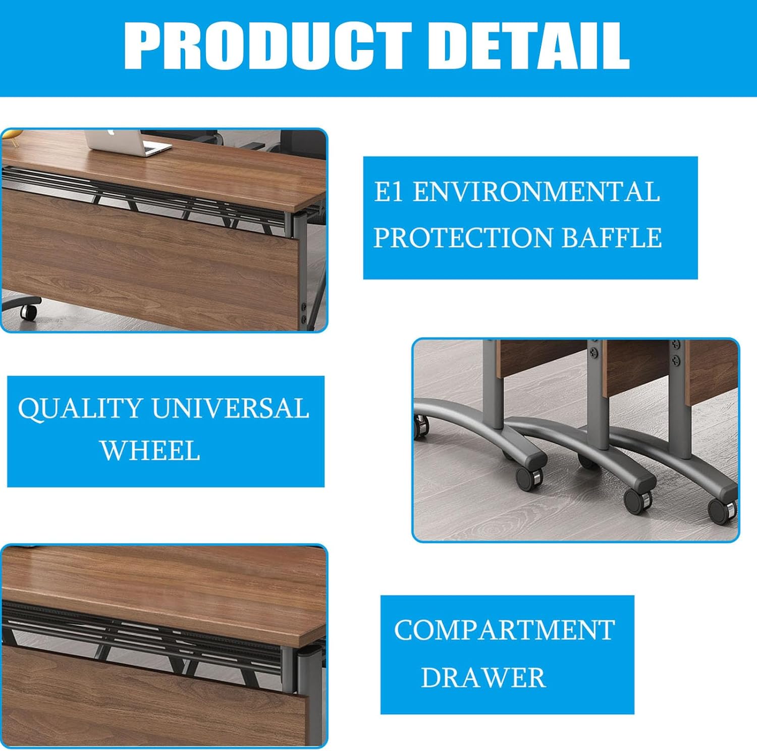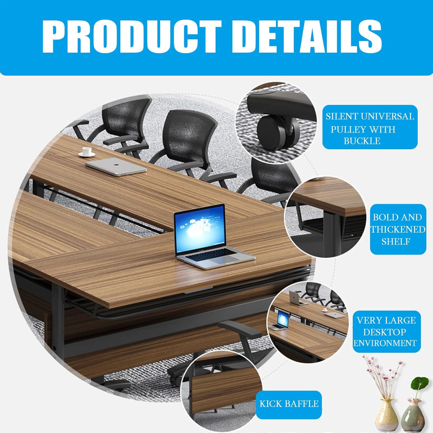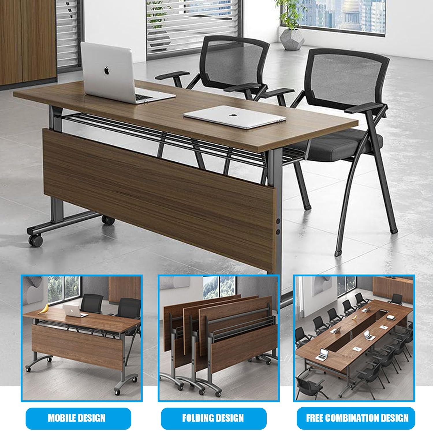 Conference Table Foldable Meeting Tables Seminar Meeting Table Flip Top Mobile Training Table with Silent Wheels Rolling Conference Room Tables for Office Classroom Conference Room,140*40cm