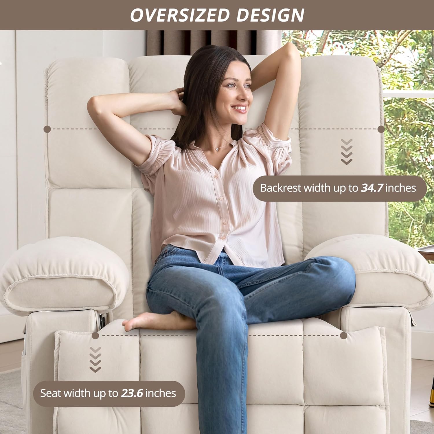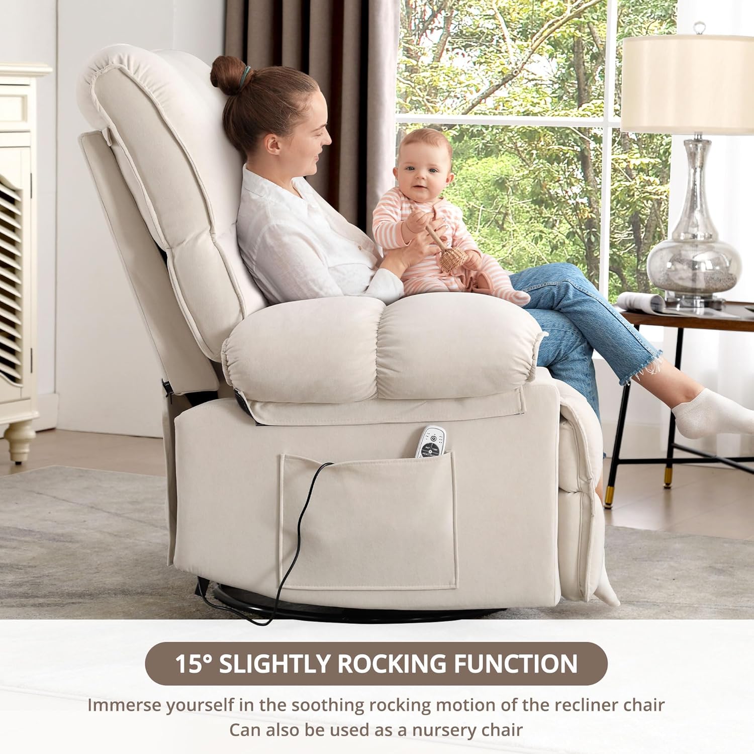 Hanherry Swivel Rocker Recliner Chair for Adults,Glider Nursery Rocking Chair Manual Reclining Chair with Massage & Heat,Single Sofa for Living Room,Bedroom