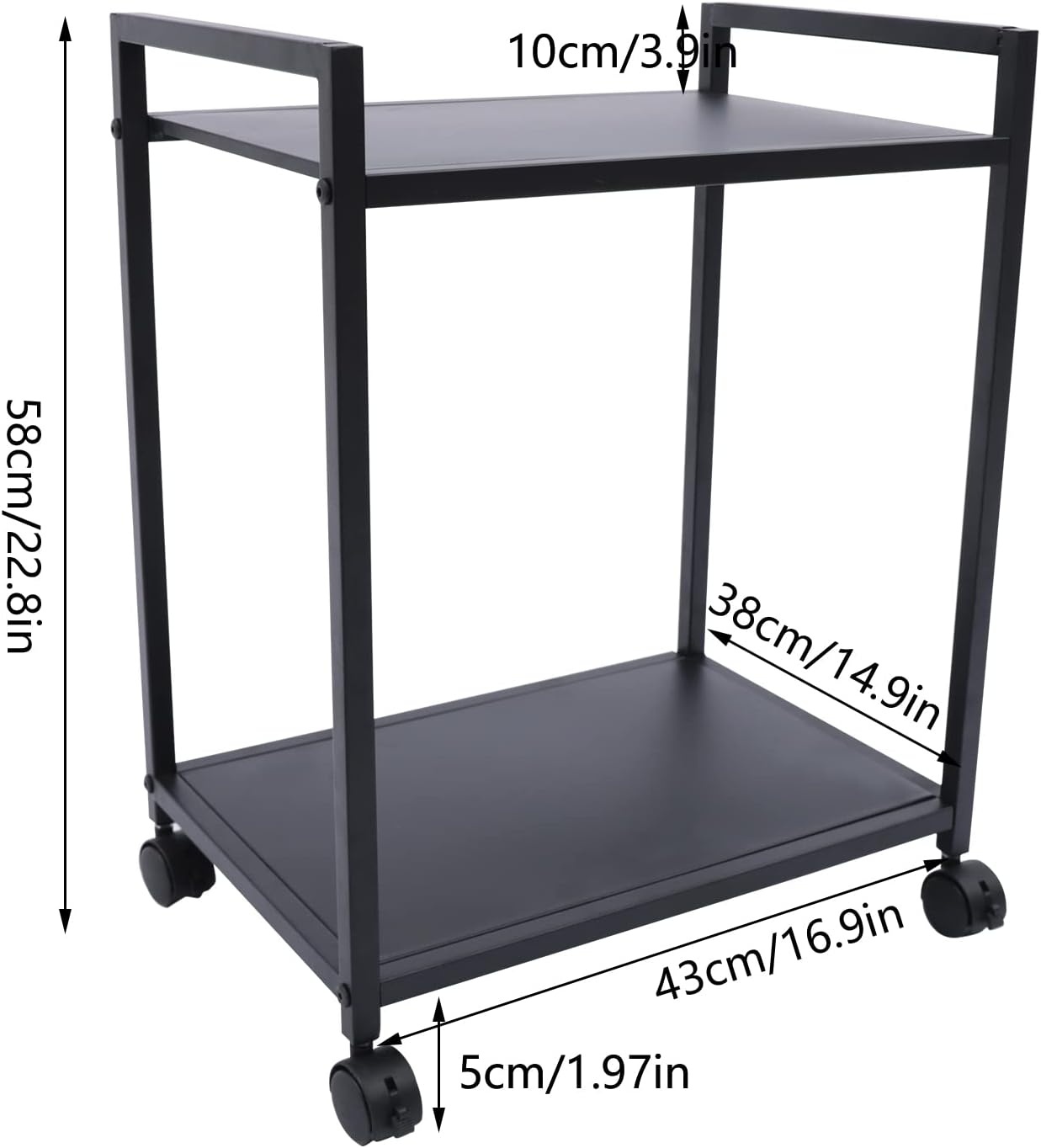 2-Tier Computer Tower Stand with Lockable Wheels, Iron Steel Pipes Printer Desk Stand Rack, CPU Stand Cart Floor Under Desk for Office Home, 55.12lbs Max Load, 16.9 * 14.9 * 22.8in