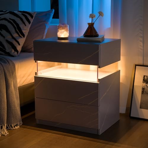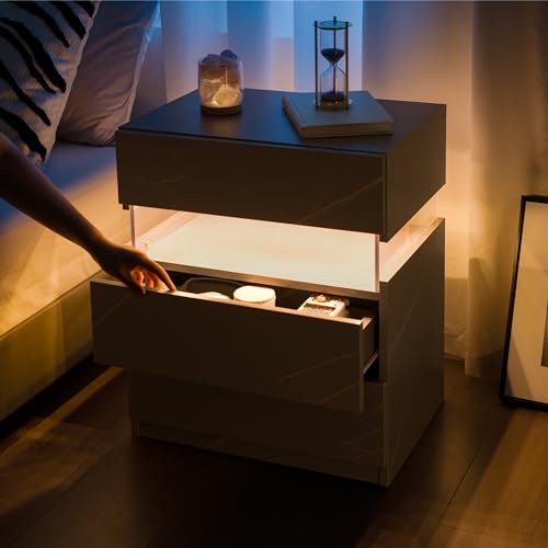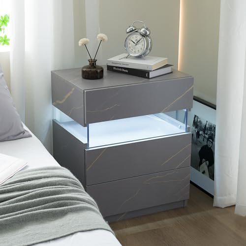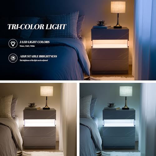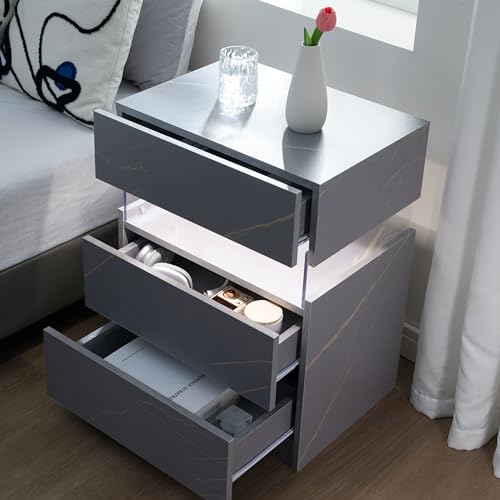 Nightstands Set of 2 LED Bedside Tables with 3 Wood Drawers LED Modern Night Stand with Acrylic Board for Bedroom Living Room