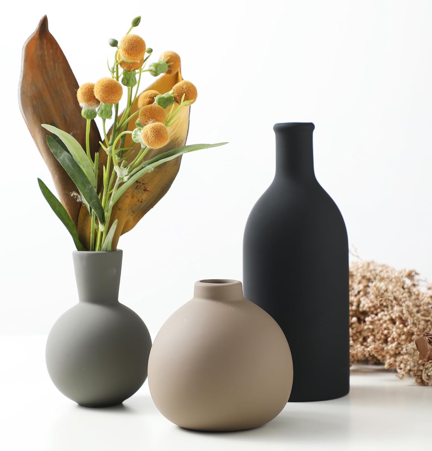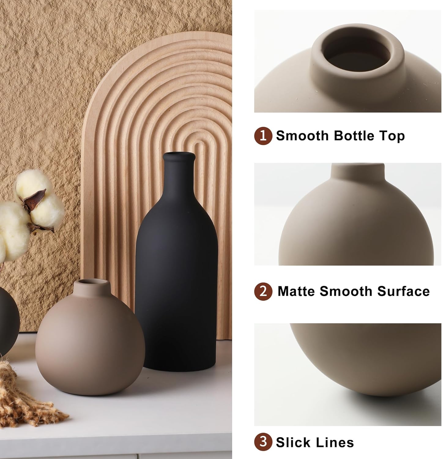 Ceramic Vase Set of 3, Vases Home Decor Rustic Vase Farmhouse Decor Vase Terra Cotta Pottery Vases for Bouquet Pampas Grass Dried Fresh Flowers, Living Room, Kitchen, Bedroom, Bathroom