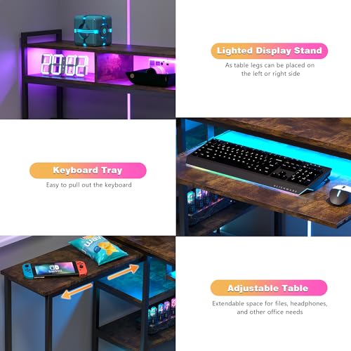 Lvifur 67” L Shaped Desk with Wireless Charging Station,24-Color RGB Dimmable Computer Desk with Pegboard,Gaming Desk with Monitor Stand, Display Stand,Human Sensor Lights for Home Office