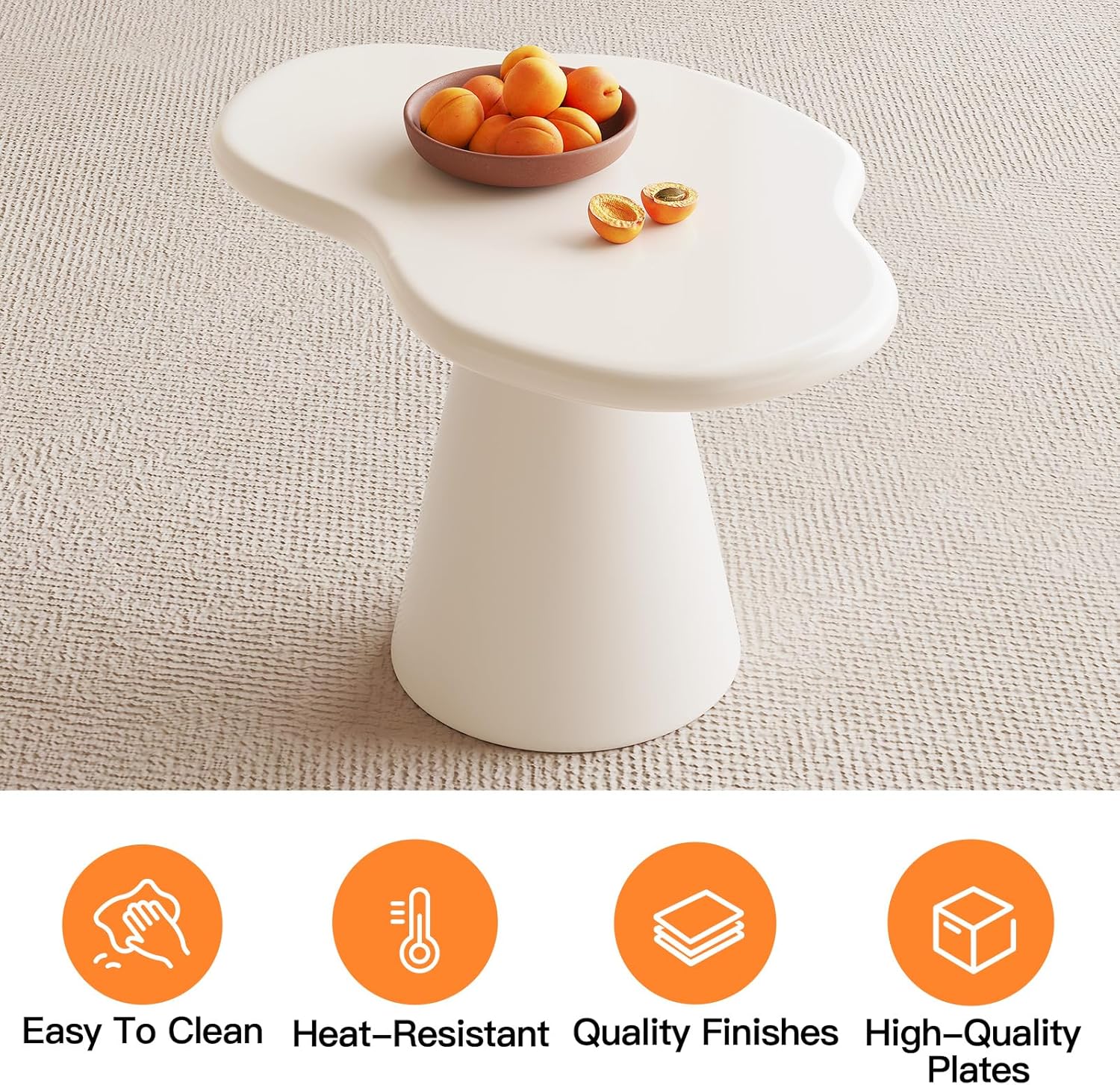Irregular Shape End Table, Modern Accent Cocktail Table for Small Space Living Room, Tapered Pedestal Base Side Table, 15.74" Hight, Easy to Assemble, White