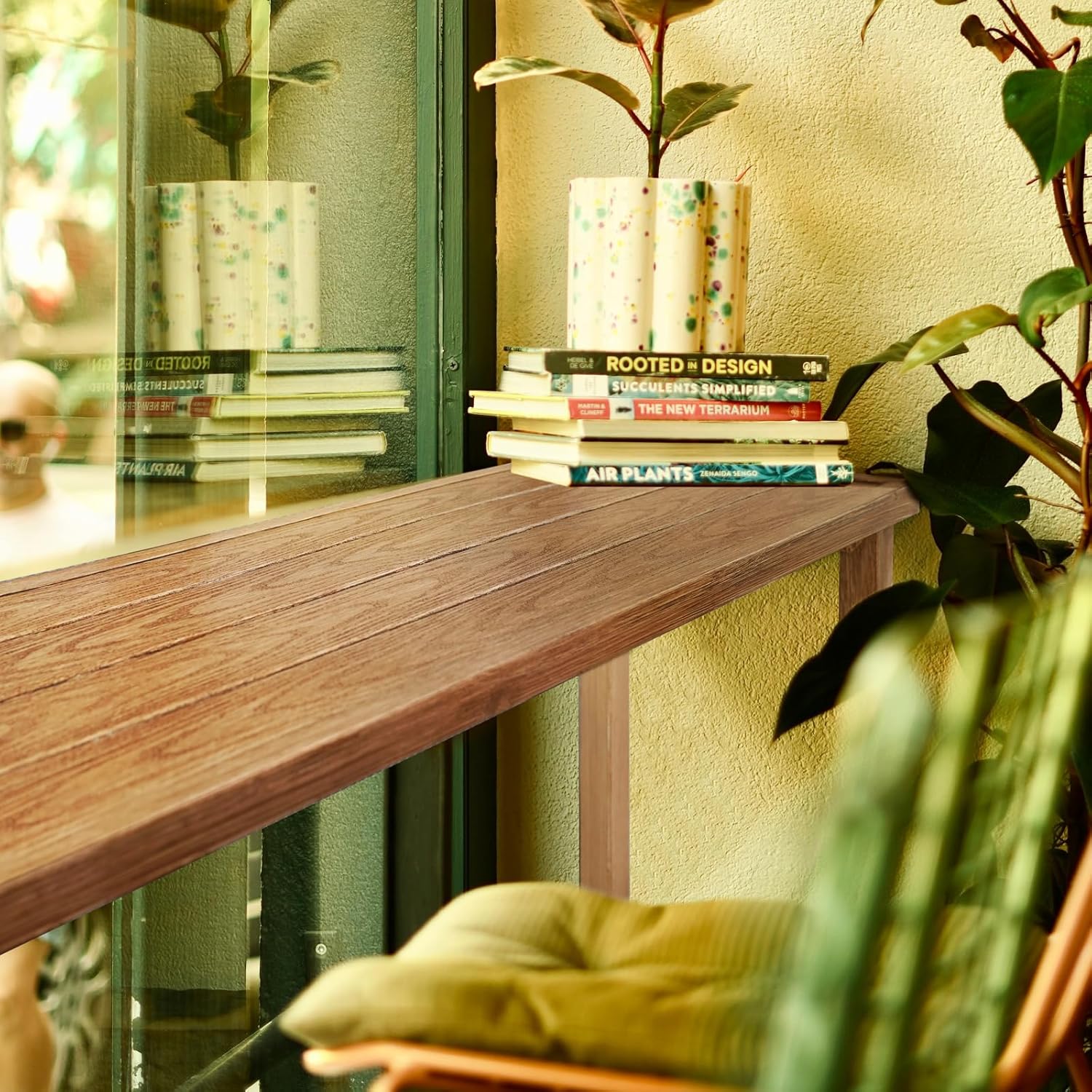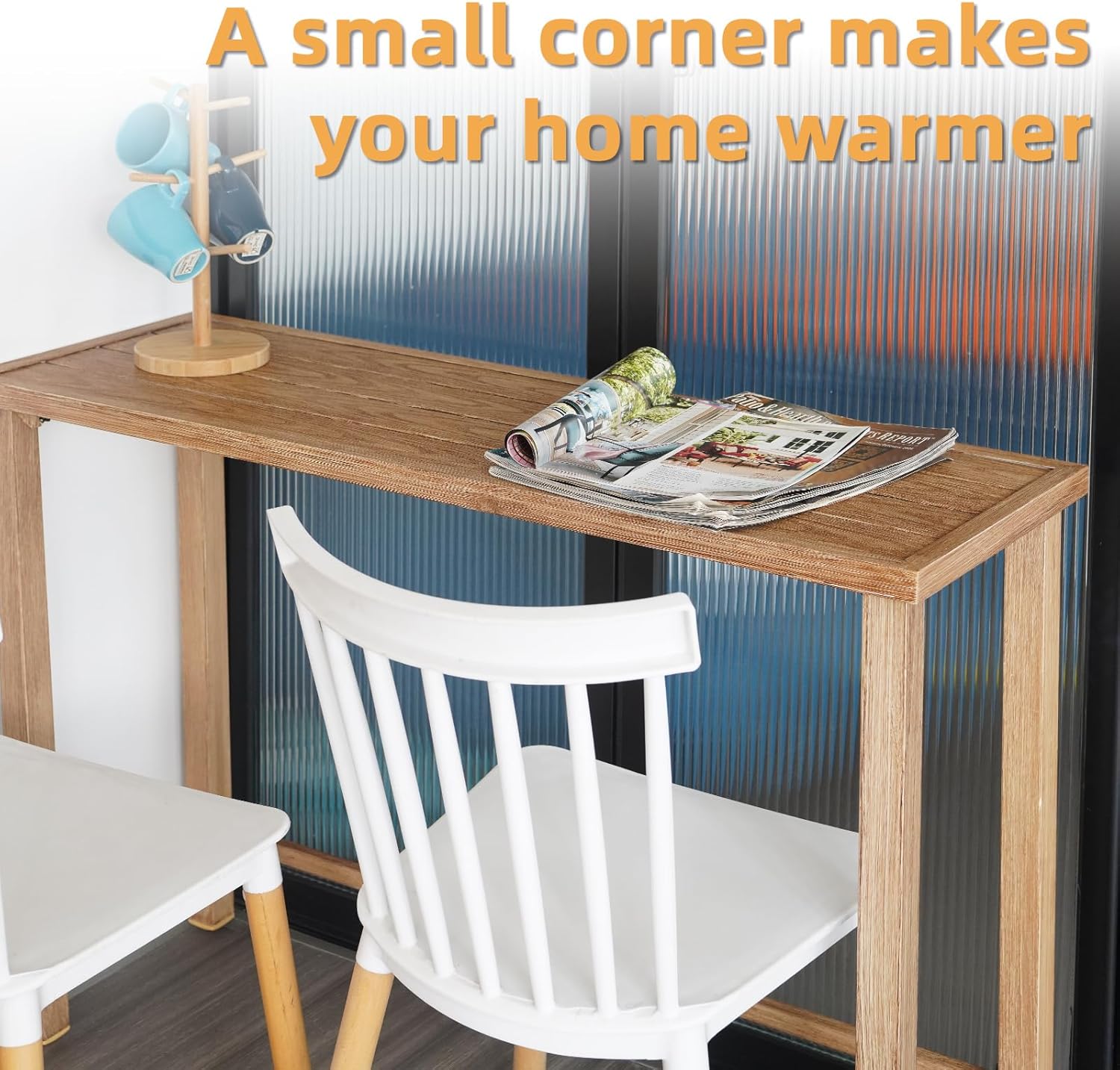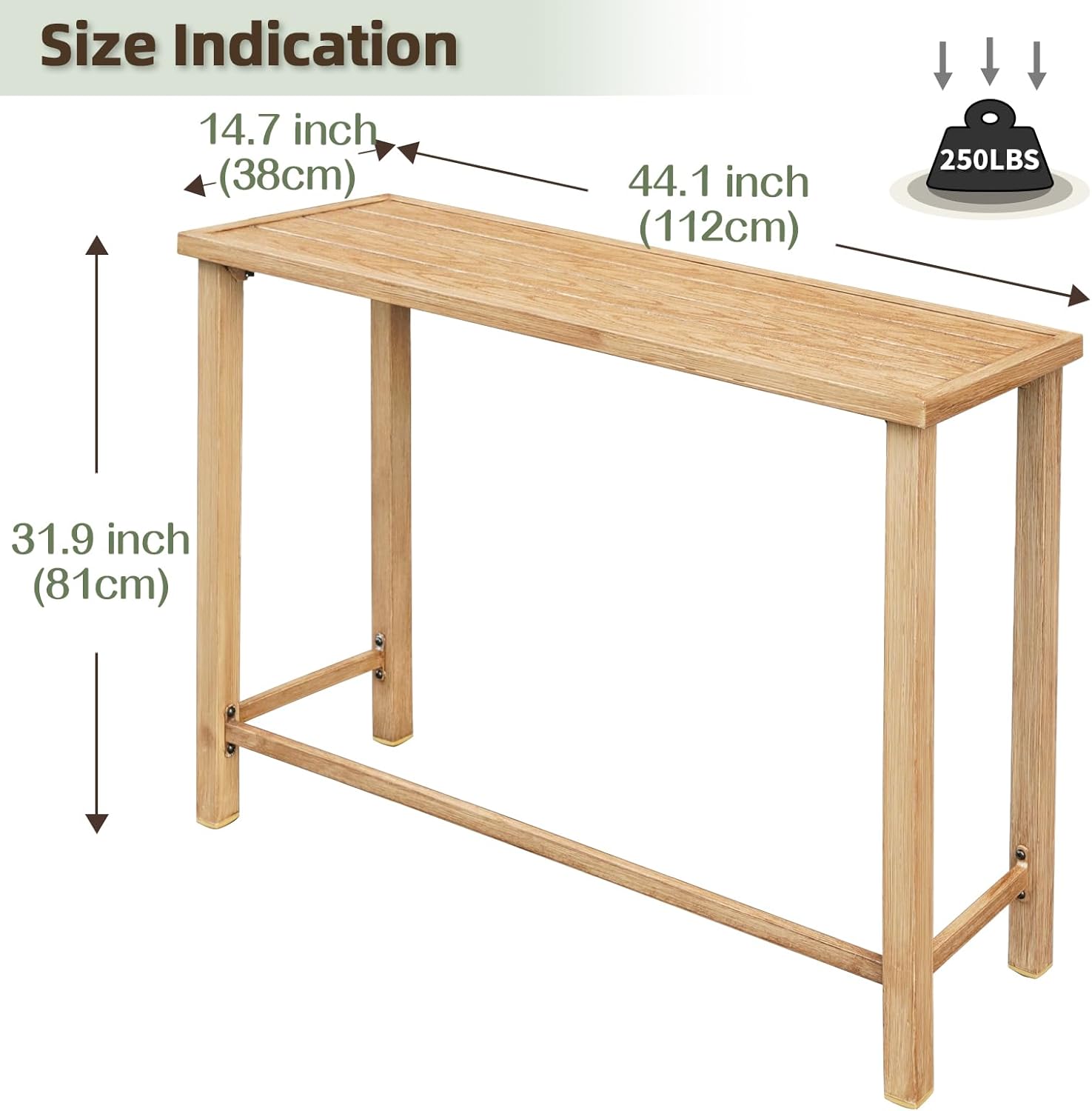 44.1" Narrow Console Table for Entryway, Metal Outdoor Patio Sofa Table Waterproof, Small Counter Height Table for Hallway, Bedroom, Living Room - Imitation Wood Grain