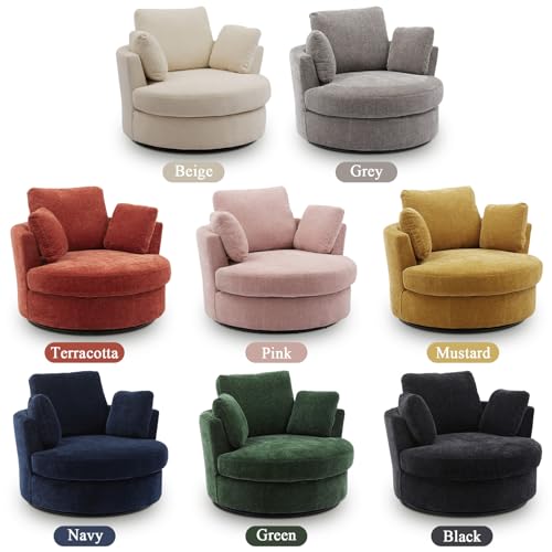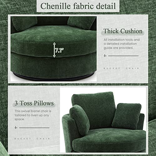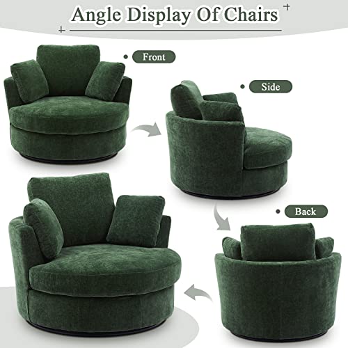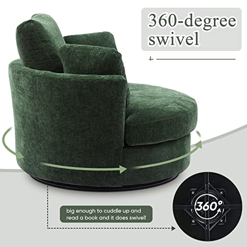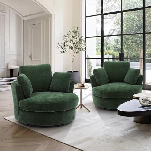 SLEERWAY Oversized Swivel Chairs Set of 2, Big Comfy Round Accent Barrel Chair and A Half Bucket Loveseat Bedroom Club Reading Lounge Living Room Furniture Set (Green)