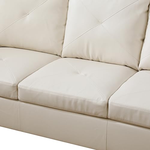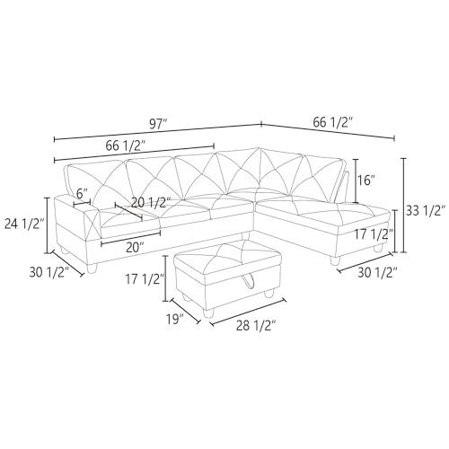 2-Piece Faux Leather Sectional Couch, Upholstered Modular Corner Sofas with Storage Ottoman & Chaise Lounge, 4 Seater Deep Seat w/Right Armrest, Large L-Shaped Living Room Sets (Dark Grey)