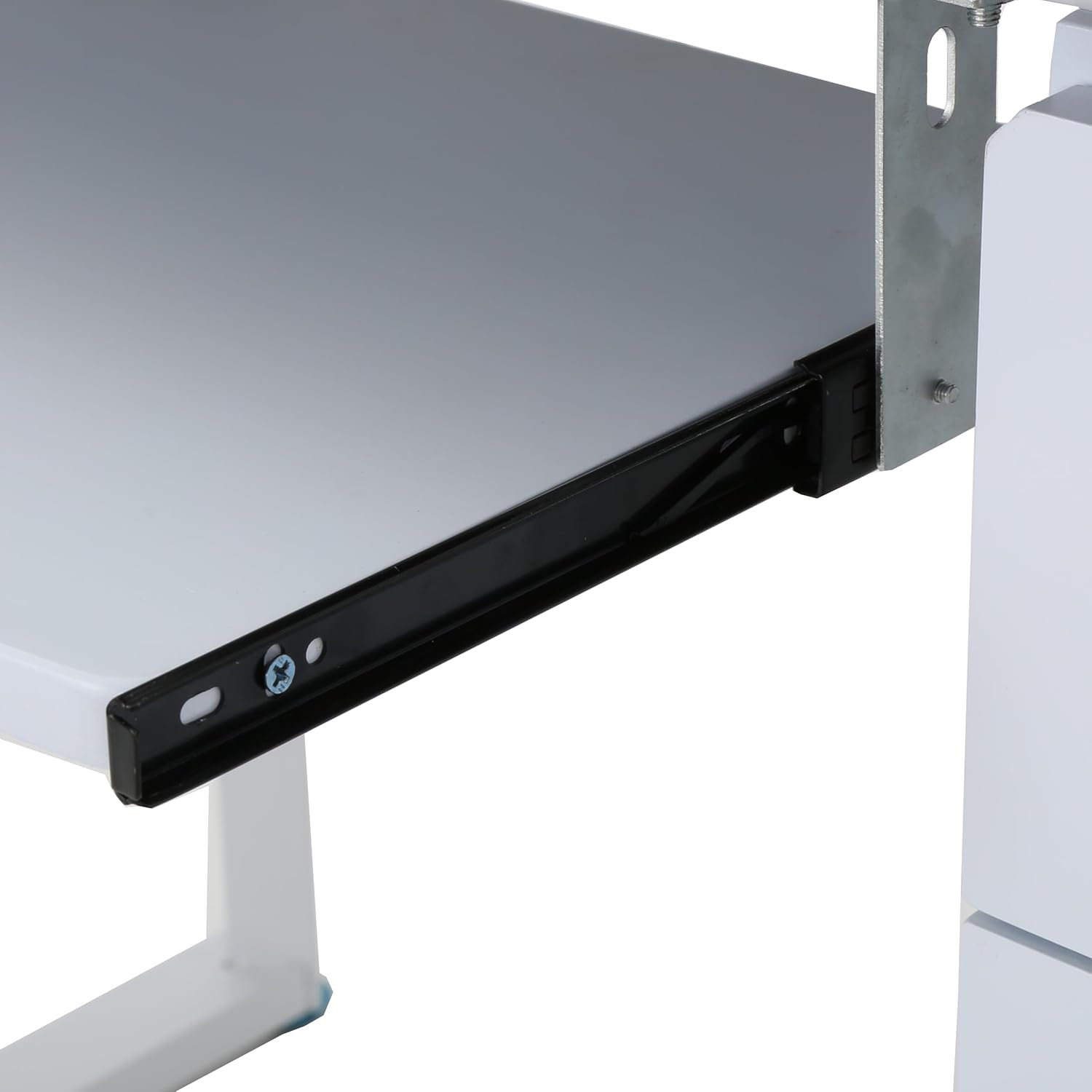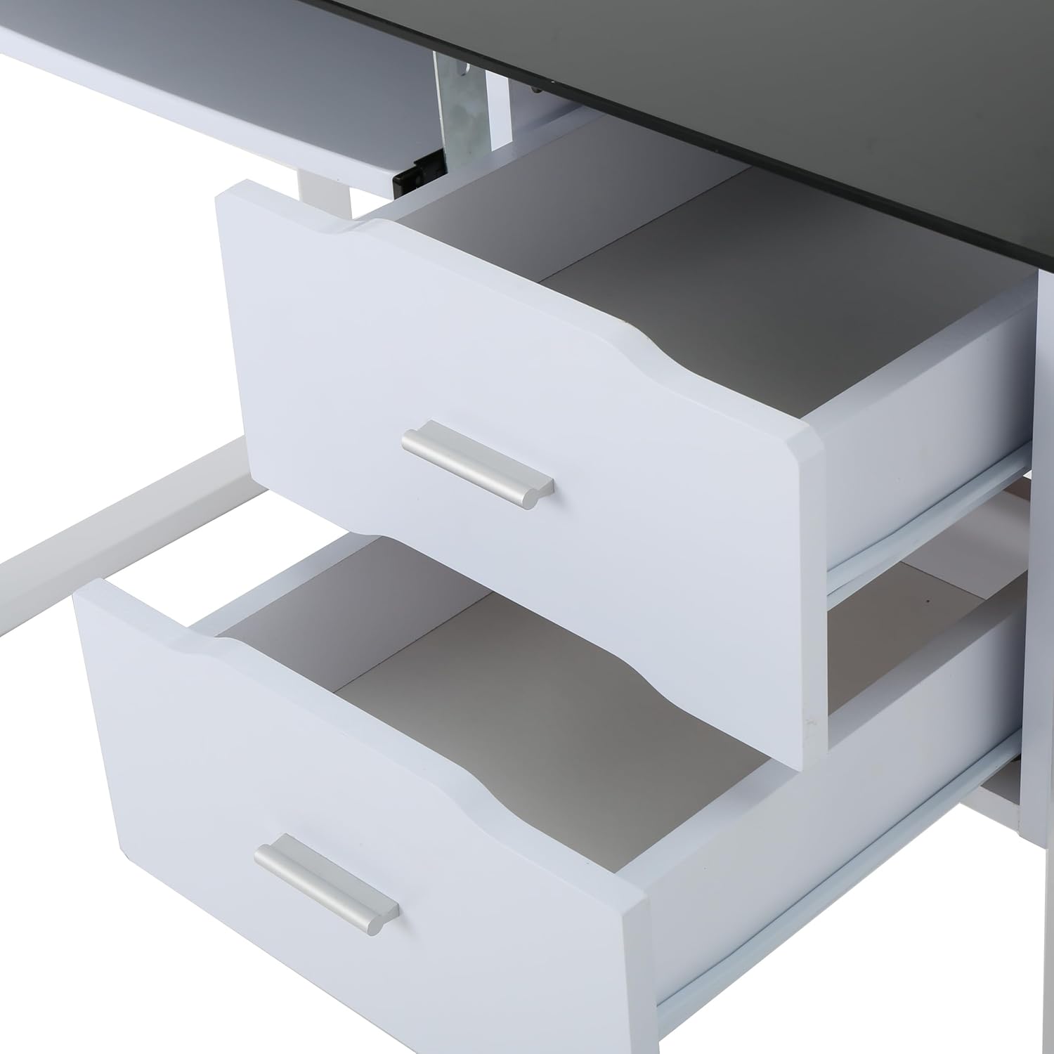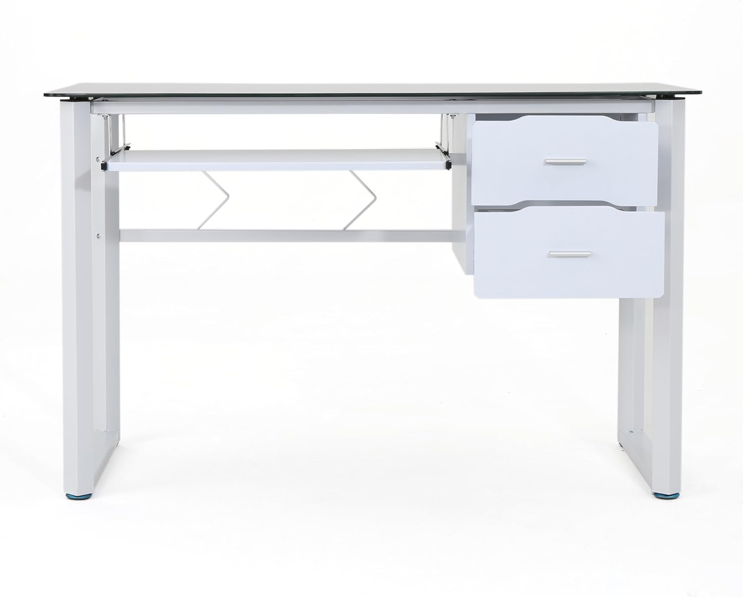 Ultimate Black Tempered Glass Computer Desk with Iron Frame - Stylish Workspace Solution for Your Home Office - includes Sliding Keyboard Tray and 2 Drawers
