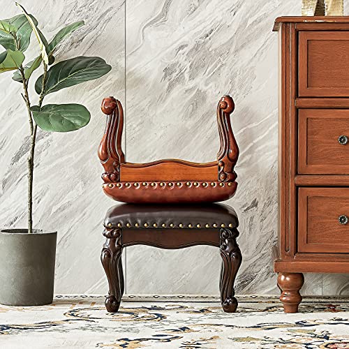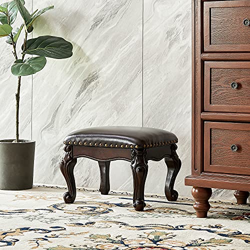 Foot Stool Microfiber Leather Ottoman Wooden Vintage Stool Small Sofa Footrest Stool for Living Room(Black-Brown)