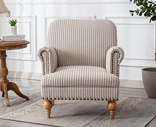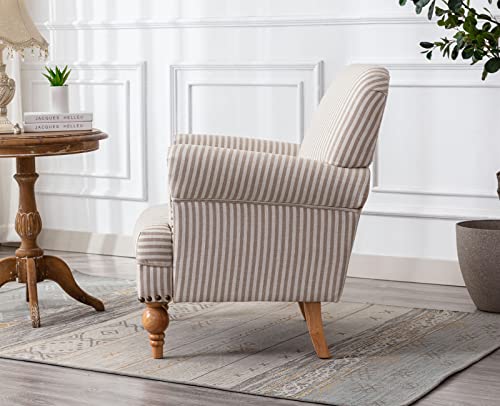 Kmax Linen Fabric Accent Chair Mid Century Modern Sofa Chair Comfy Lounge Chair with Nailhead Arm Wood Legs Upholstered Seat for Living Room Bedroom, Blue Stripe