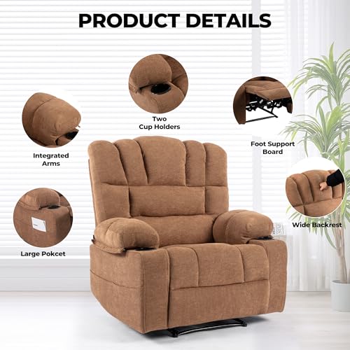 INMOZATA Rocker Recliner Chair, Manual Rocker Recliner Chair with Massage and Heat for Living Room, Chenille Nursery Rocking Chair with Cup Holders, Soft Padded Headrest and Armrest, Blue