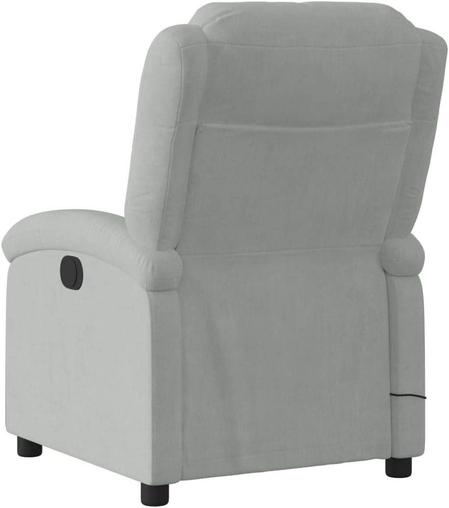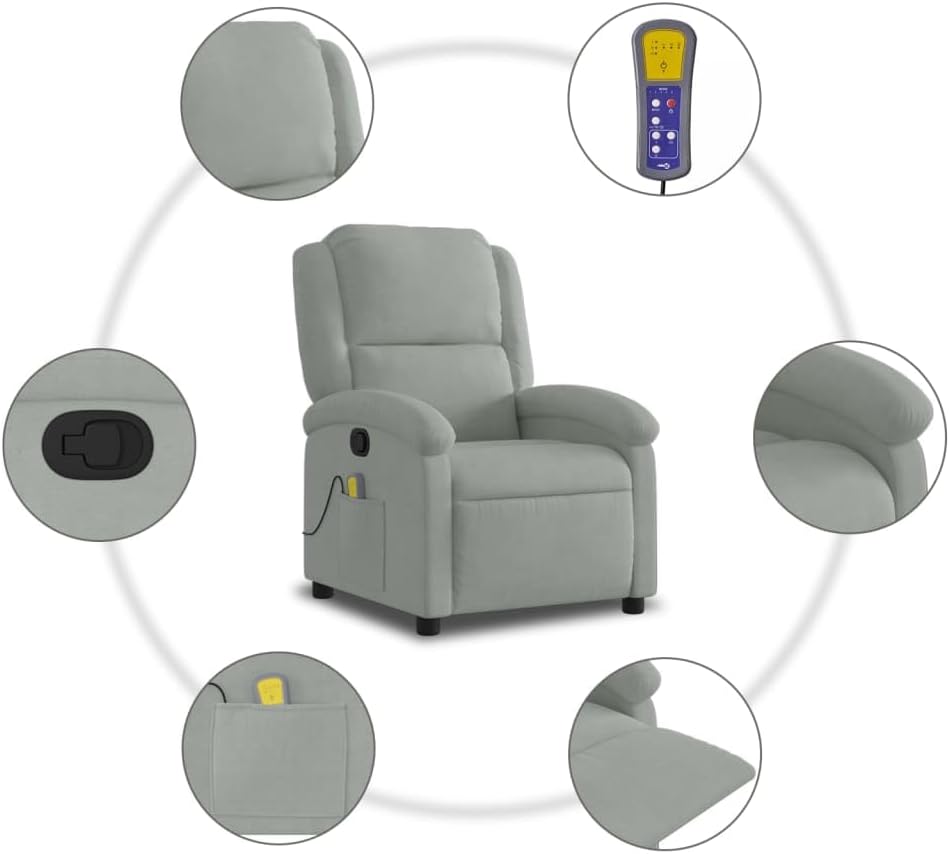 vidaXL Light Gray Velvet Massage Recliner Chair - Manual Recline, Vibration Massage, Side Pocket, Comfortable Lounger for Living Room