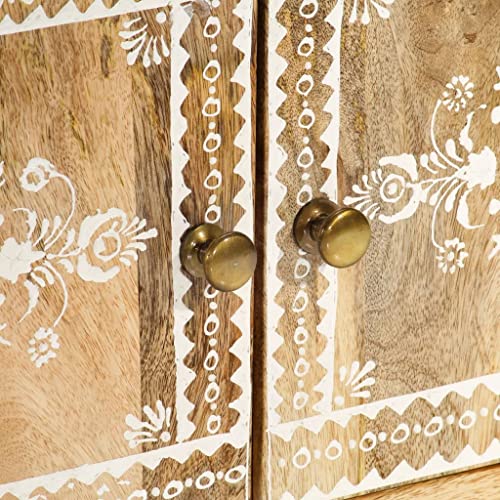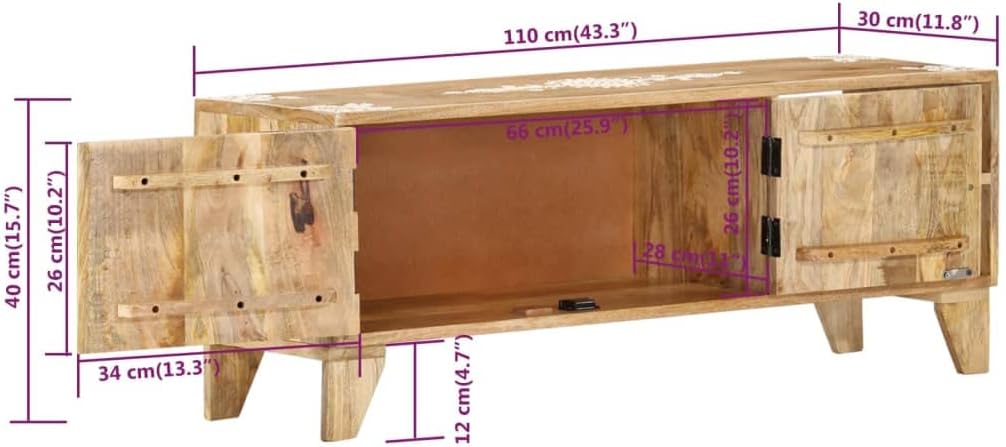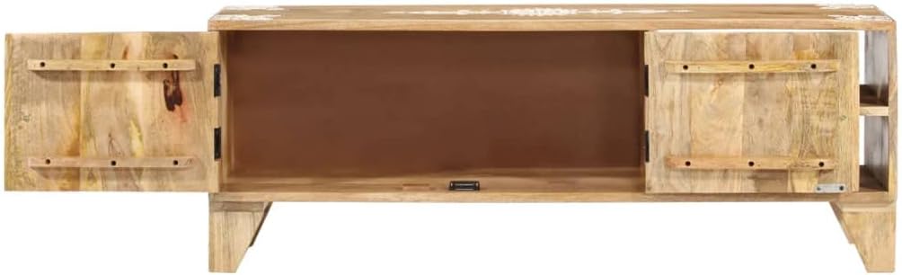 TV Stand 43.3"x11.8"x15.7" Solid Wood Mango,Solid Mango Wood TV Stand with Ample Storage and Handpainted Patterns for TV and Media Appliances Furniture for TV & Media, Entertainment Centers