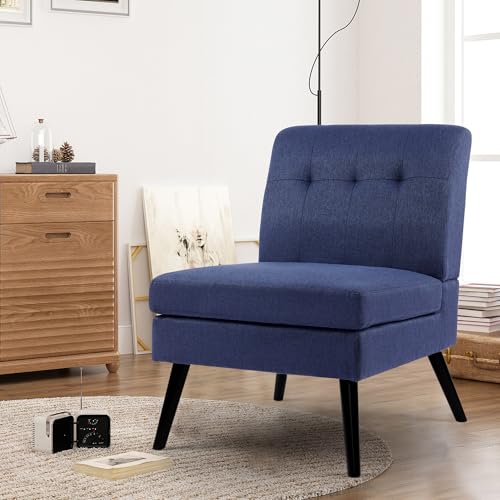 LSSBOUGHT Armless Accent Living Room Chairs, Modern Side Chair for Bedroom Upholstered Single Sofa Chair with Wood Legs for Reading Room, Comfy Fabric Vanity Chair for Makeup room (yellow)