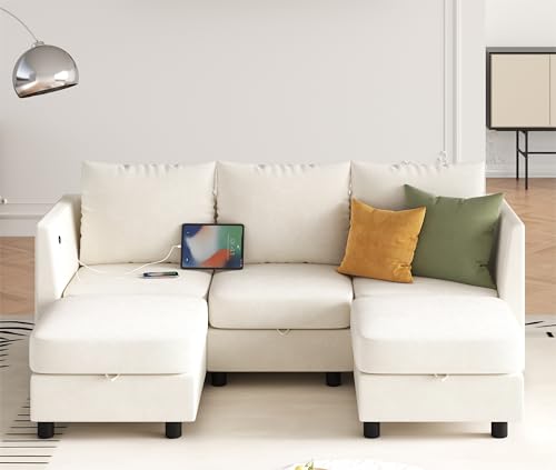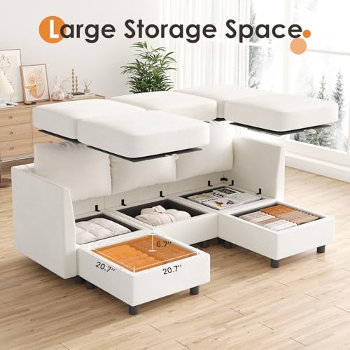 Modular Sectional Sofa, U Shaped Sectional Couch with Storage Seat, USB Charging Port, Chenille 7 Seat Sectional Sofa Couch with Reversible Chaise, Dark Grey