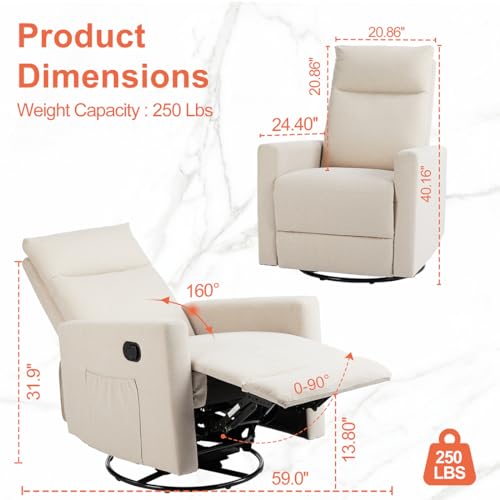 Small Manual Recliner Chair Win Back Single Sofa,Adjustable Reclining Fabric Single Lazy Boy Accent Sofa,Removable Cushion for Living Room, Bedroom (Gray)