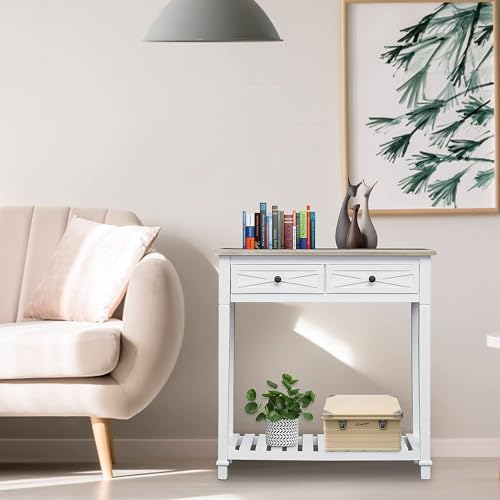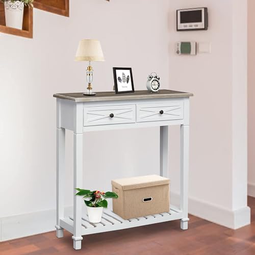 Kinlife Modern Entryway Console Table - Long Sofa Table with 4 Drawers and Lower Shelf Wood End Table with Storage, Black
