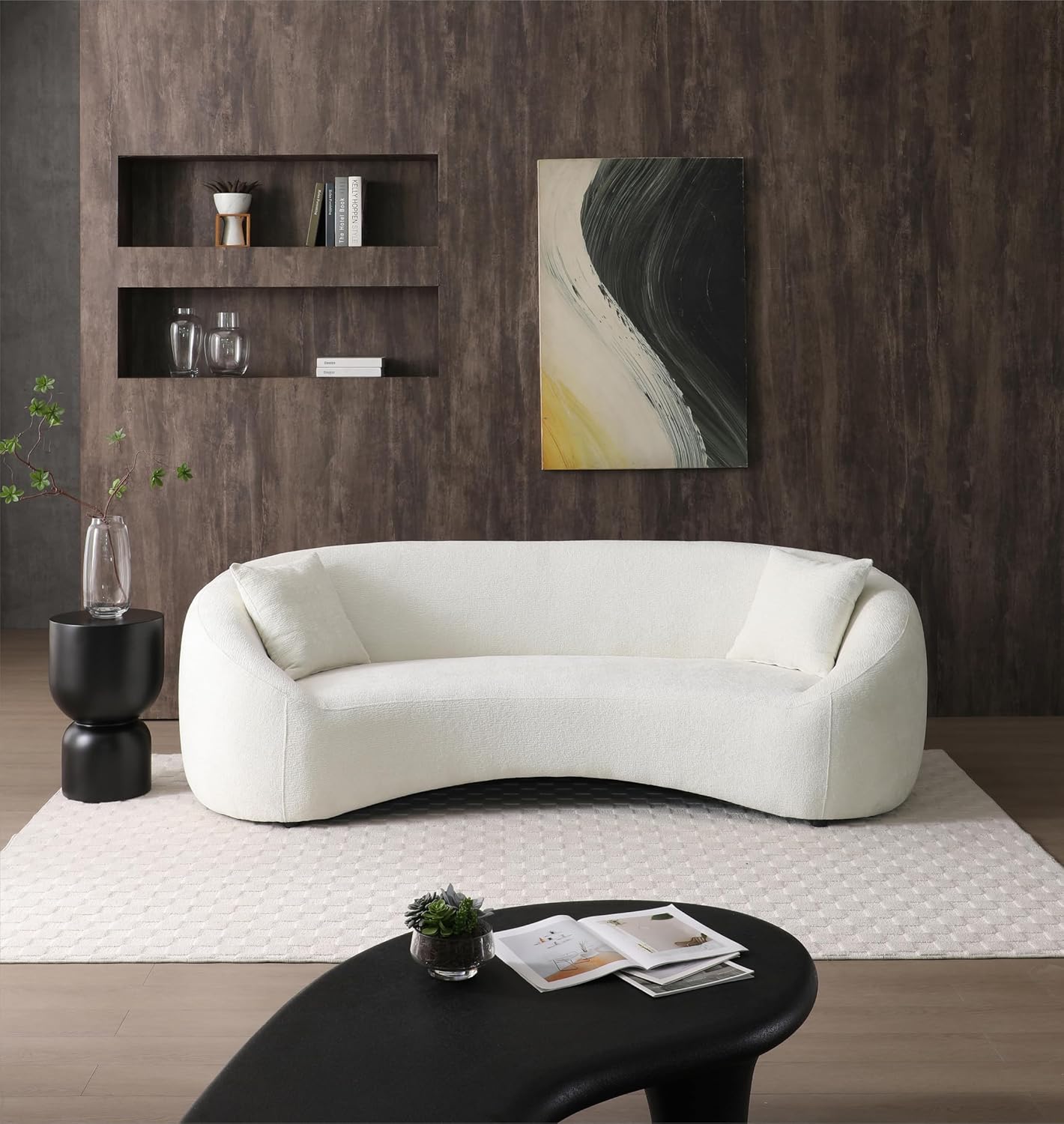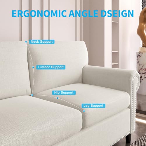 Minimalist Curved Sofa, 3 Seater, Chenille Velvet Fabric Upholstered Sofa, Tight Curved Back Velvet Cloud Couch for Living Room Apartment Office (White)