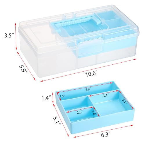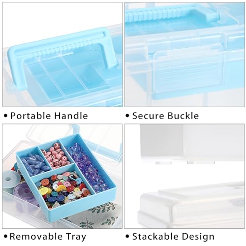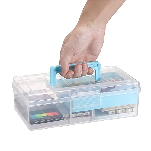 BTSKY Clear Plastic Storage Box with Removable Tray Multipurpose Stationery Storage Box with Handle Handy Sewing Box Art Craft Supply Organizer Home Utility Box (Blue)
