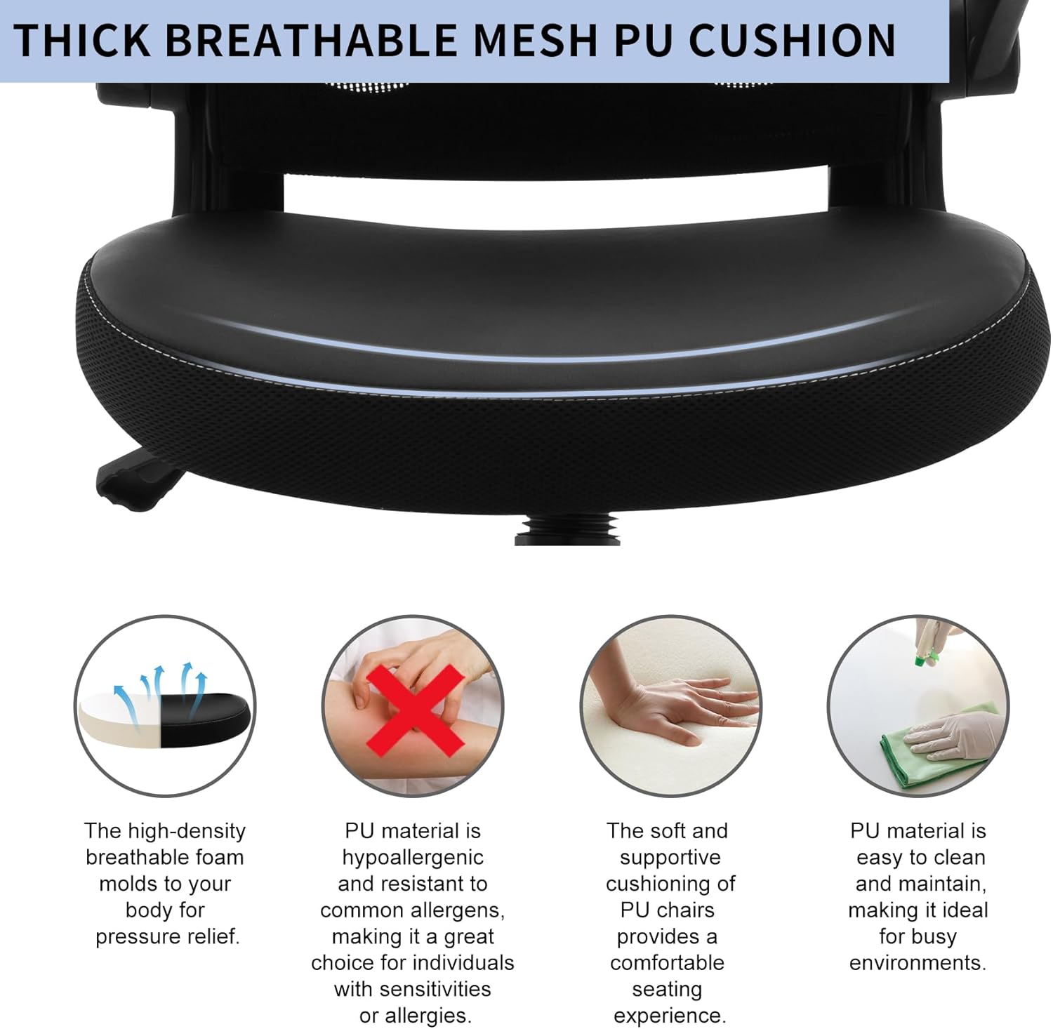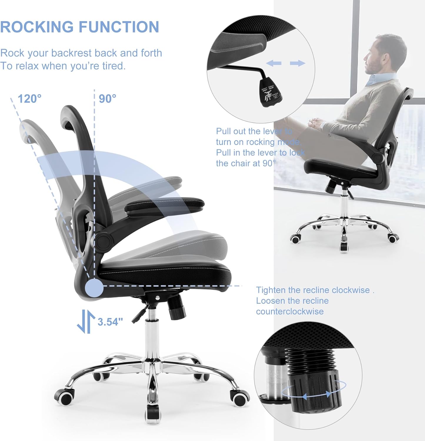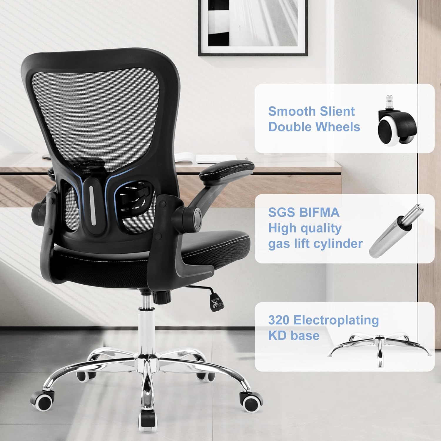 Office Chair,Ergonomic Desk Chair, Adjustable Height Computer Task Chair with Mesh Back and Armrests, Black