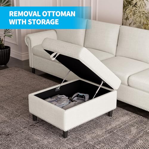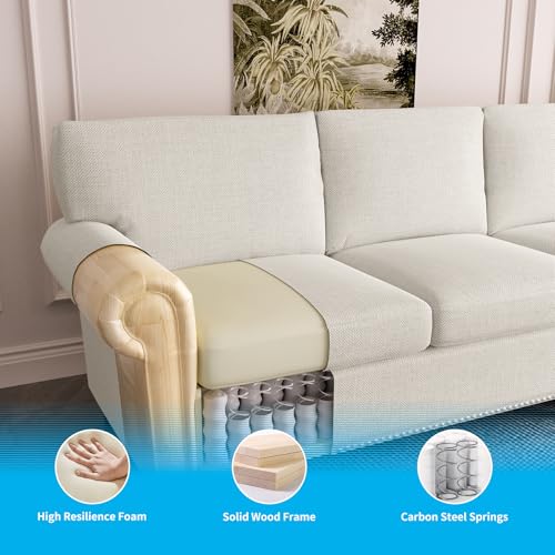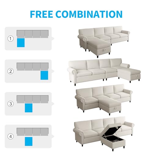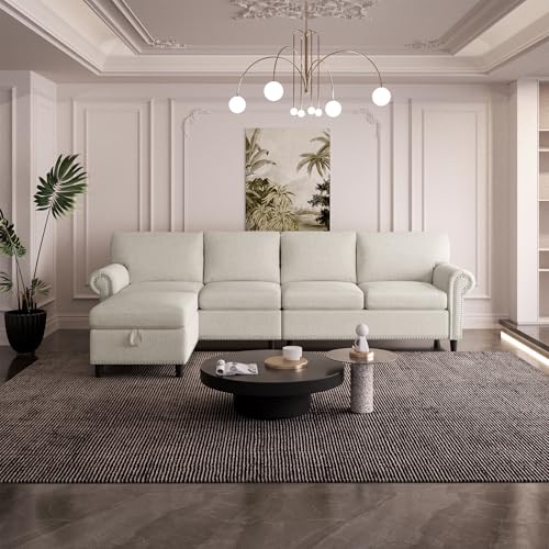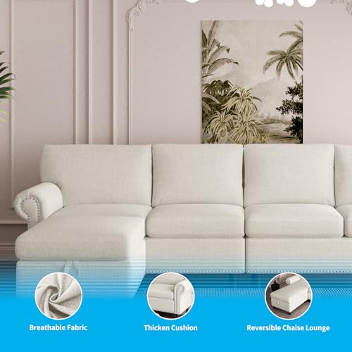 100inch 4 Seater Sectional L Shape Sofa Couch for Living Room,Beige Deep Seat Large Velvet Sectional Sofa Couch w Chaise,Modular Convertible Sectional Sofa Couch,Comfy Linen Lounge Couch