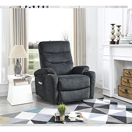 INMOZATA Electric Power Lift Massage Recliner Chair for Elderly Flannel Lazy Boy Reclining Sofa for Adults with Heat, 3 Positions, 2 Side Pockets and Cup Holders,Dark Gray