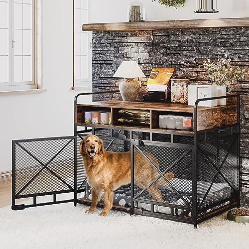 Dog Crate Furniture,Wooden Dog Crate End Table,48 Inch Dog Kennel with Drawers,Heavy Duty Dog Crate,Decorative Pet Crate Dog Cage for Indoor 48.2" L x 27.6" W x 35.7" H (Rustic Brown)