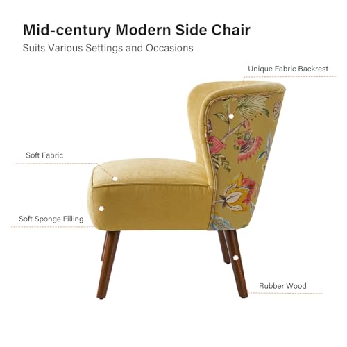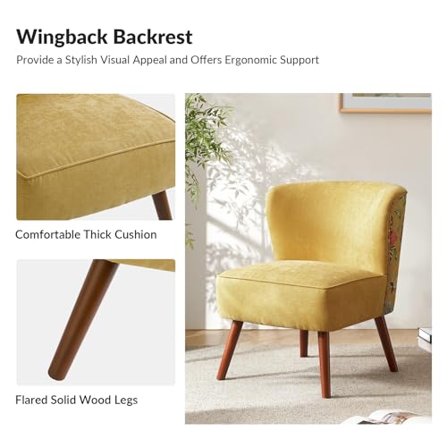HULALA HOME Floral Armless Accent Chair Set of 2,Fabric Slipper Chair with Floral Back, Vanity Chair for Bedroom Living Room,Teal