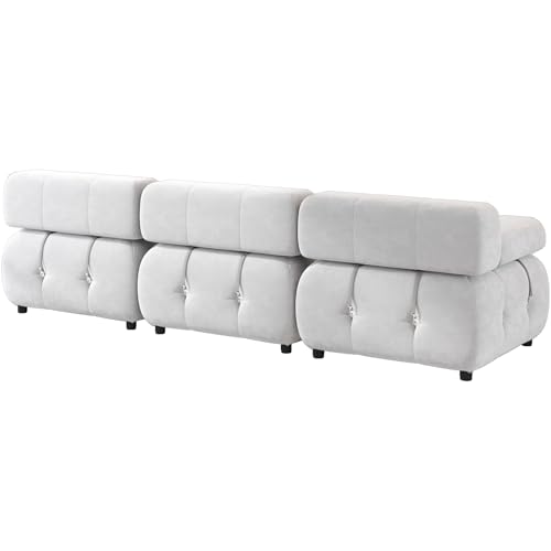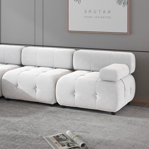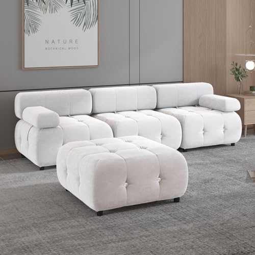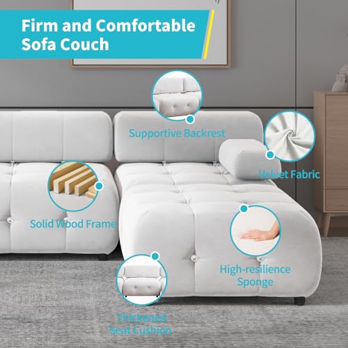 CECER 103" W Convertible Modular Sectional Sofa, L-Shaped Minimalist Velvet Sofas Couch, Luxury Modern 4-Seater Bubble Sofa with Ottoman for Living Room/Office/Apartment-Beige
